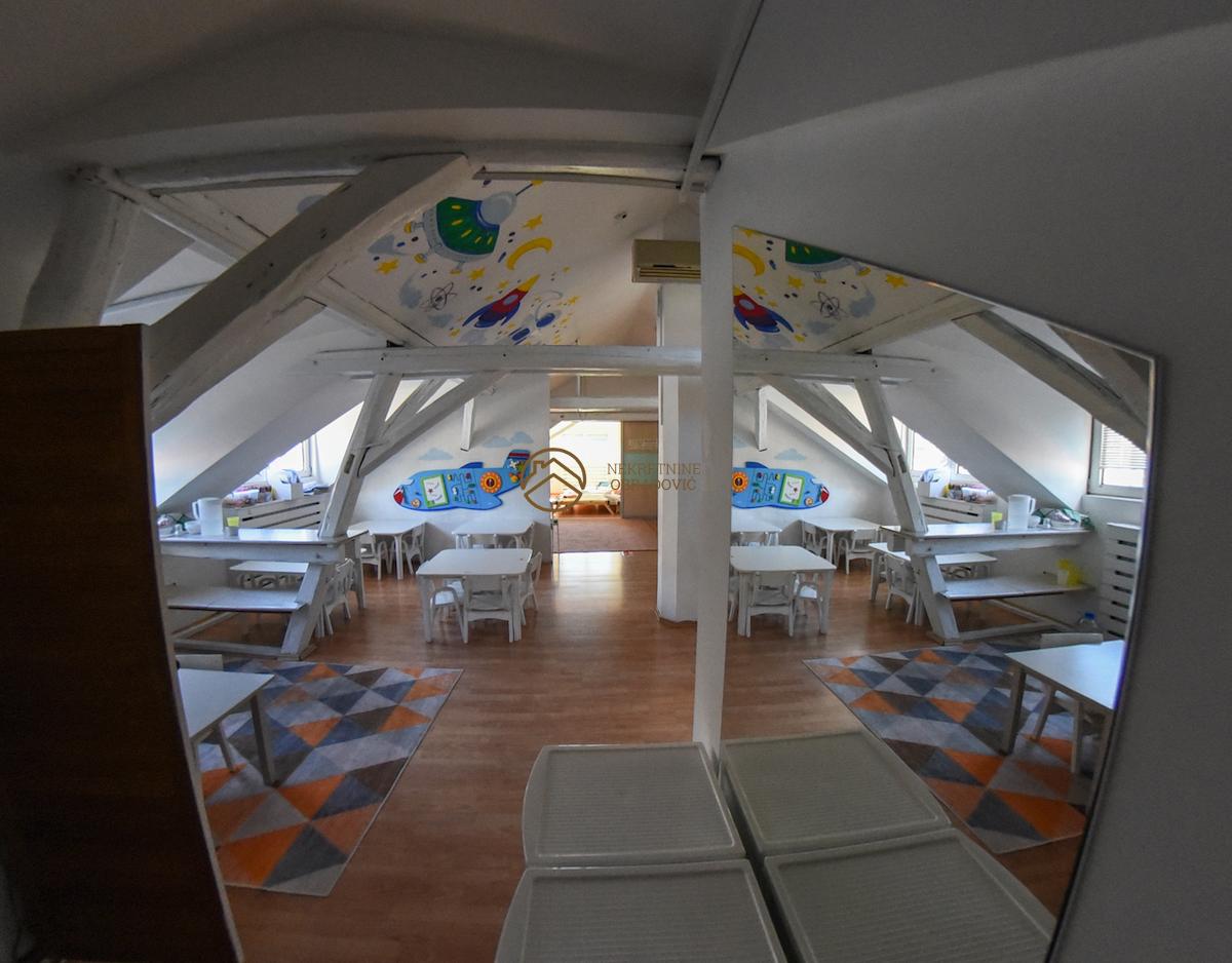 Prizemlje – 4 prostorije, ostava, 2 toaleta. Prvi sprat – ulaz, 4 prostorije, 2 toaleta, kuhinja, terasa, dvoriste. Drugi sprat – velika open space prostorija, kuhinja, kupatilo, kancelarija, 4 ostave.
