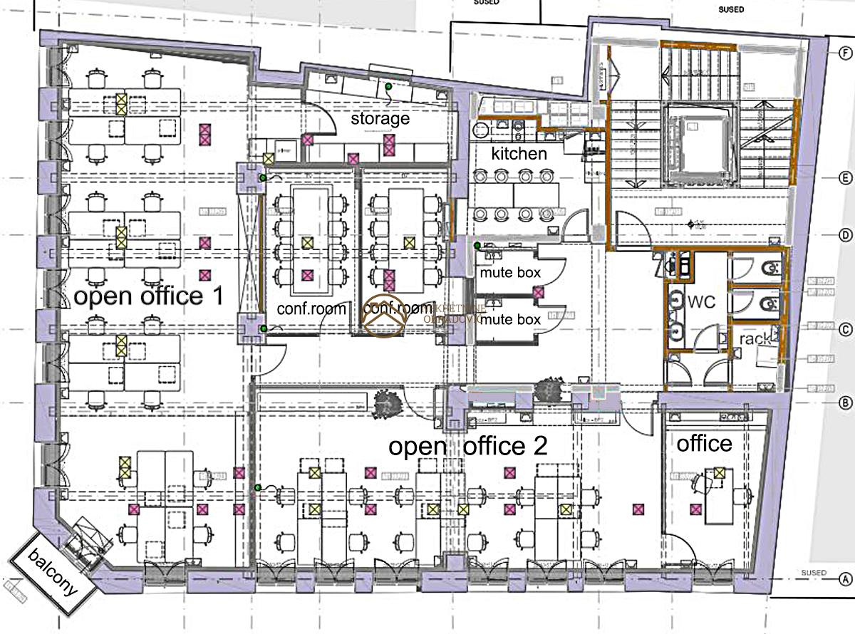 Izdvojene kancelarije,dve izolovane prostorije(mute box),kuhinje,dva toaleta,ostave…