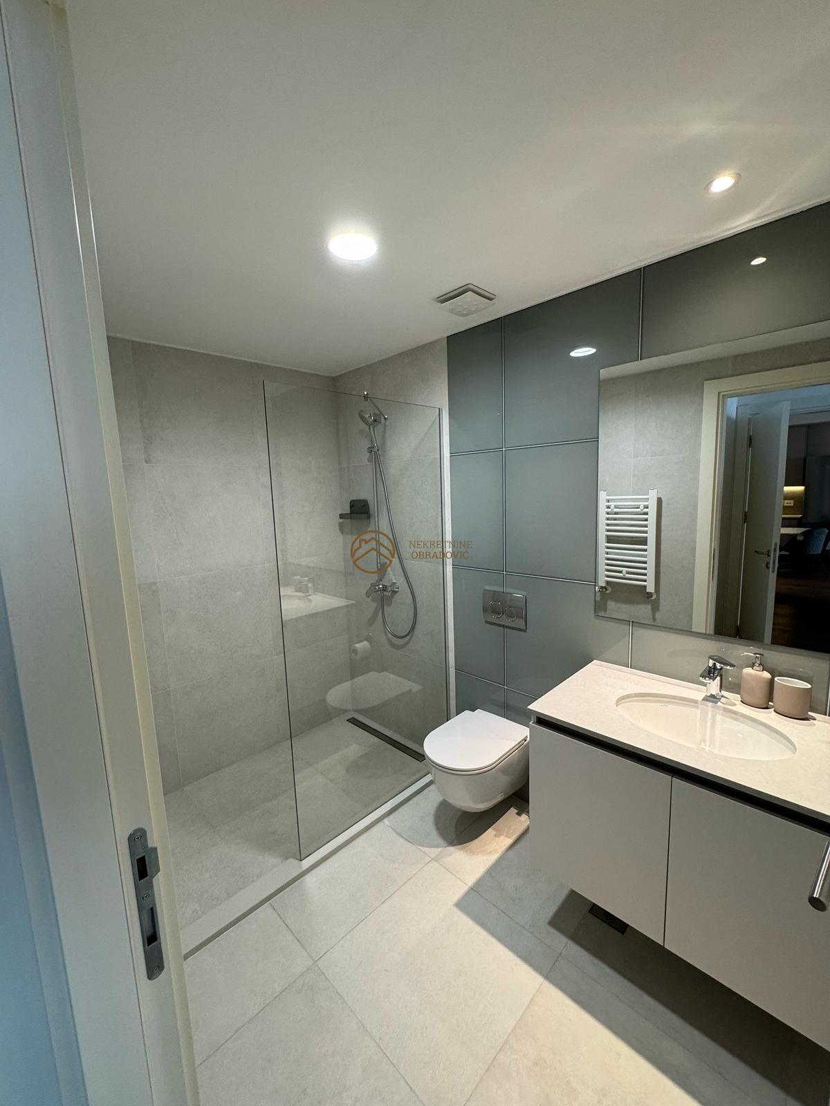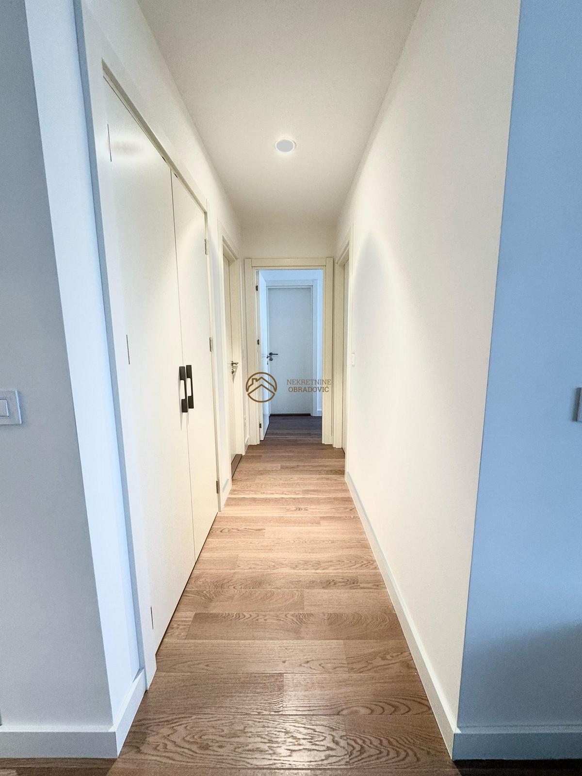 povrsine 75 m2. Stan je potpuno nov, namesten, sa centralnim grejanjem i terasom.