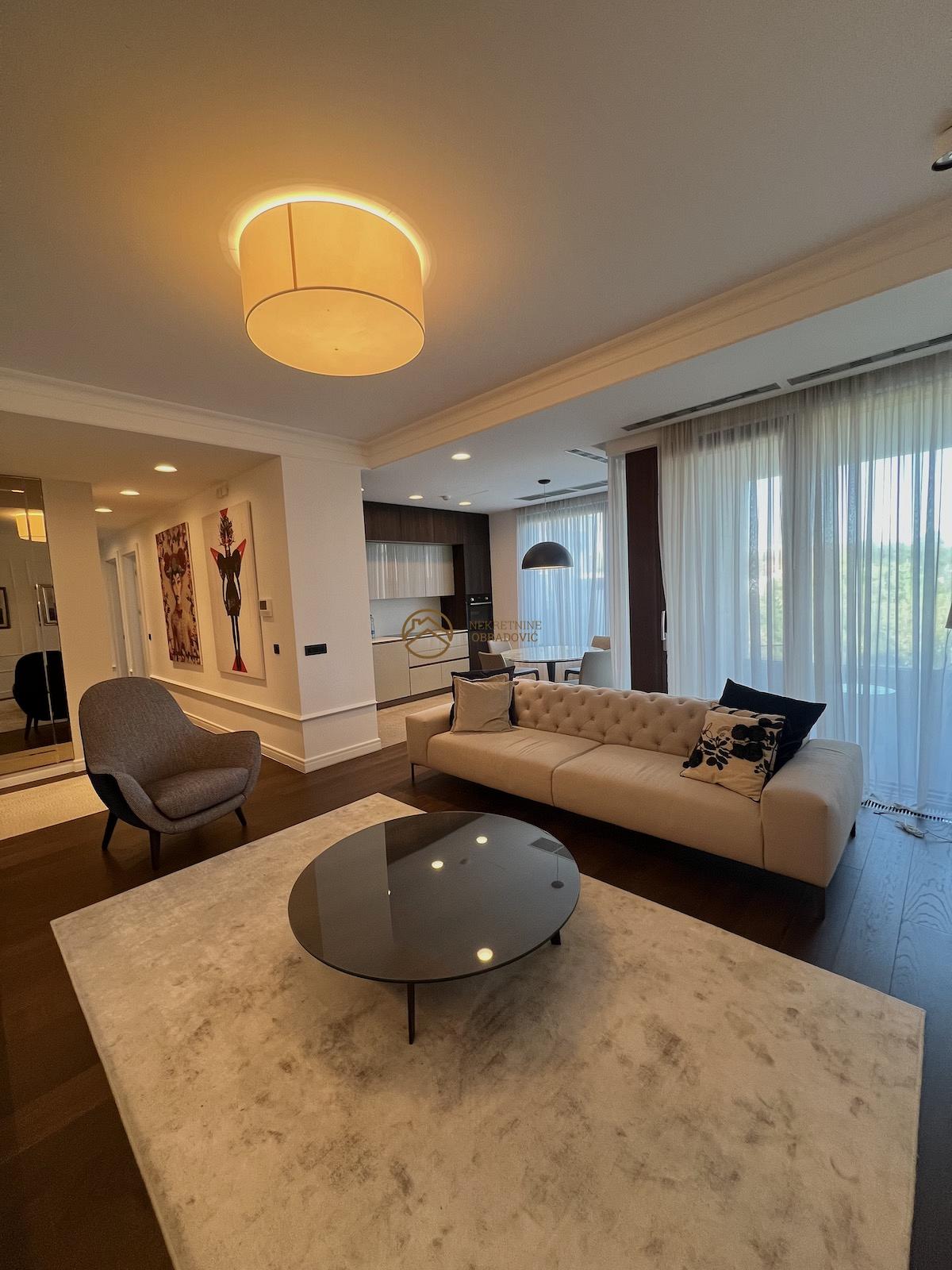 U visokokvalitetnom, modernom objektu, izdaje se luksuzan, trosoban stan u neposrednom okruzenju diplomatske kolonije, na Dedinju.
