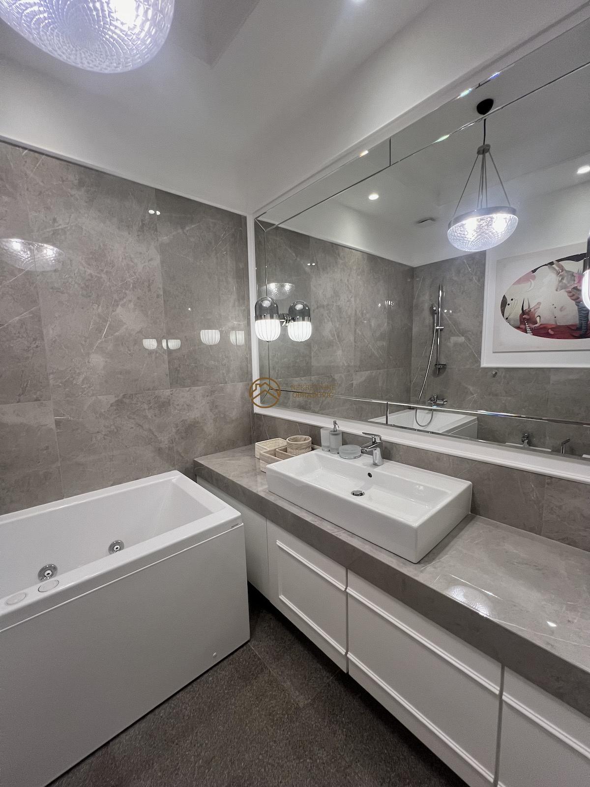 Stan je u potpunosti arhitektonski isplaniran, i sa puno ukusa kompletno opremljen namestajem i materijalima najviseg kvaliteta.