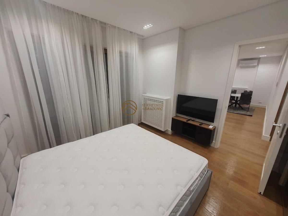 Izdaje se luksuzan, potpuno nov, dvosoban stan u kompleksu Kneza Milosa