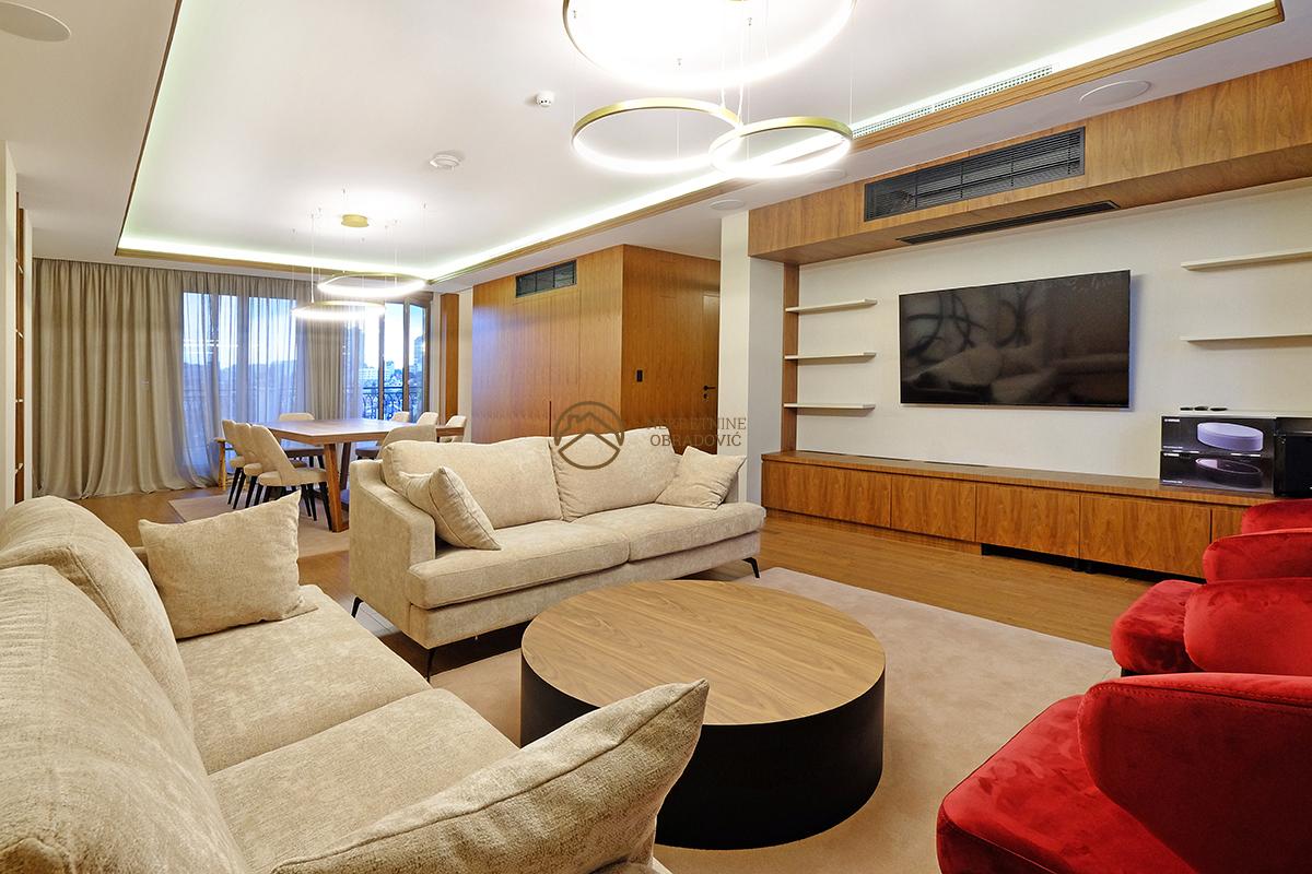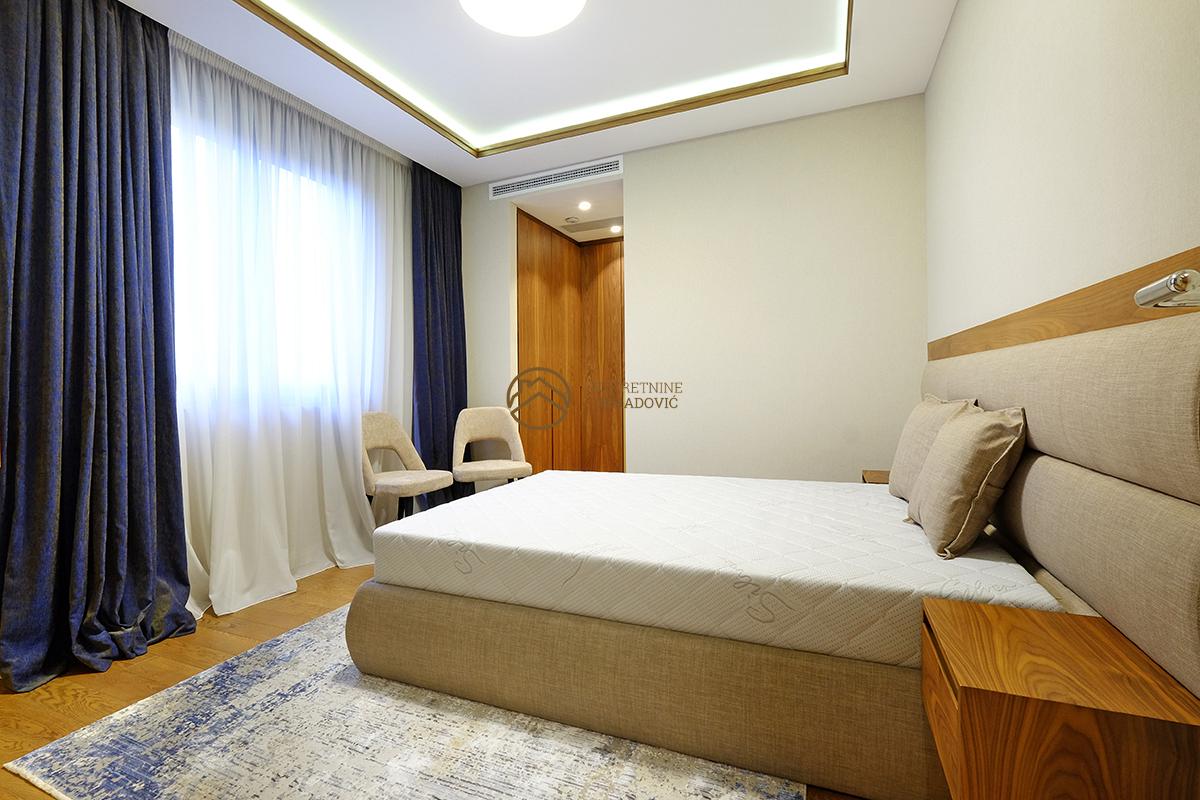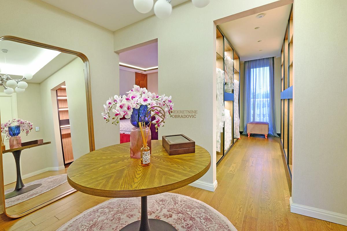 Nesvakidasji penthaus u neposrednoj blizini parka I sportskog centra Sumice, koji se prostire na impozantnih 250m2 u jednom nivou, dvostrano orijentisan, sa spektakularnim pogledom na citav grad. Prostrano predsoblje odvaja Dnevni, zajednicki prostor (salon, trpezarija, kuhinja, 2 prostrane terase, toalet, veseraj) od intimnog spavaceg bloka sastavljenog od 4 spavace sobe, svaka sa sopstvenim kupatilom I izlaskom na terasu, dok se u sastavu master spavace sobe nalazi mini salon, 2 garderobe, kupatilo, radna soba I manja intimna terasa). Nekretnina se prodaje kompletno dizajnerski uredjena I opremljena. Dodatni komfor buducem vlasniku daje prostrani garazni boks za 2 velika automobila, podrumska prostorija od 8m2, lift kojim se dolazi direktno u stan, kao I ugradjen smart home system. Hladjenje I grejanje regulisano je fancoil sistemom koji je posebno instaliran samo za ovu stambenu jedinicu.