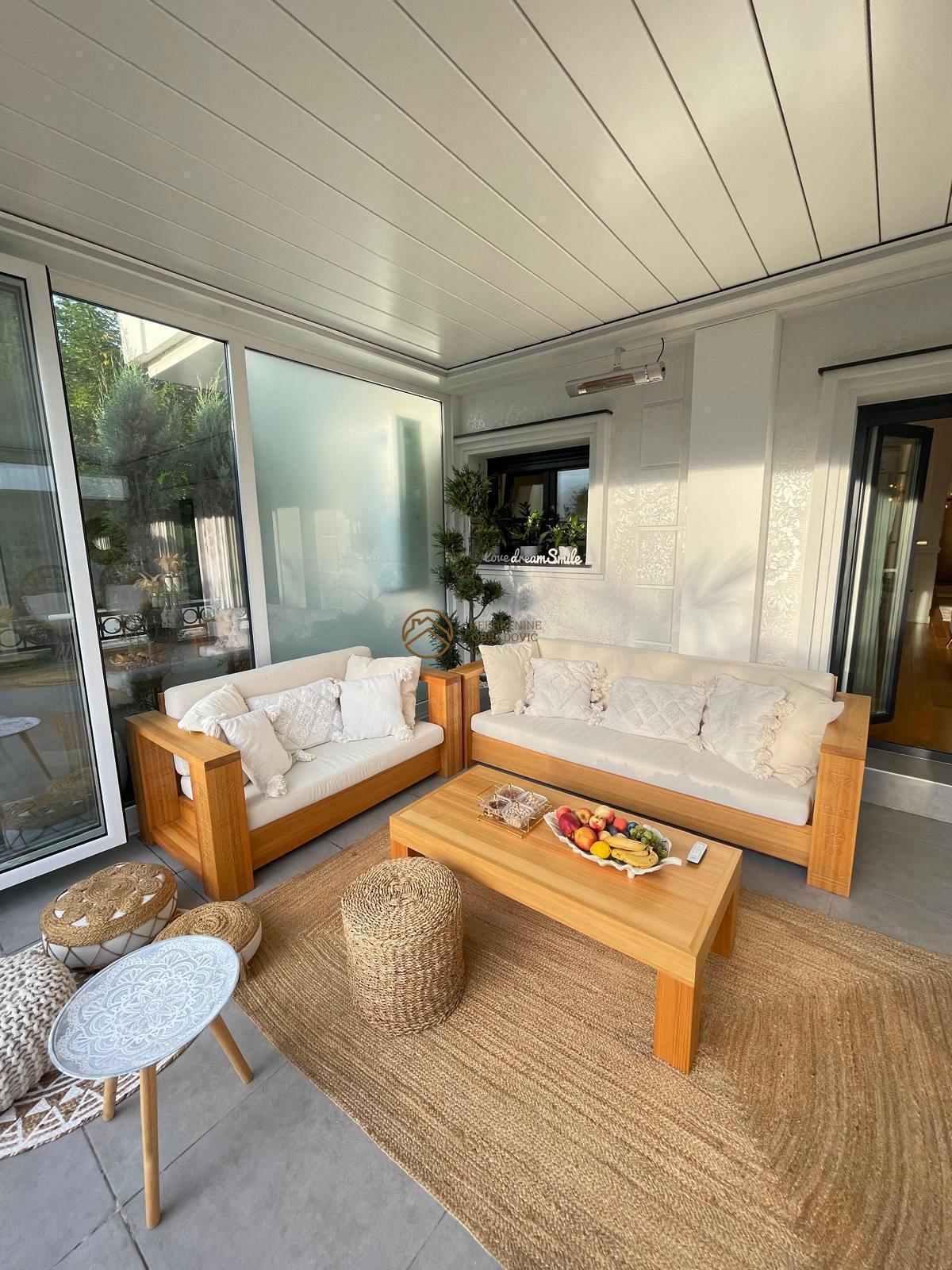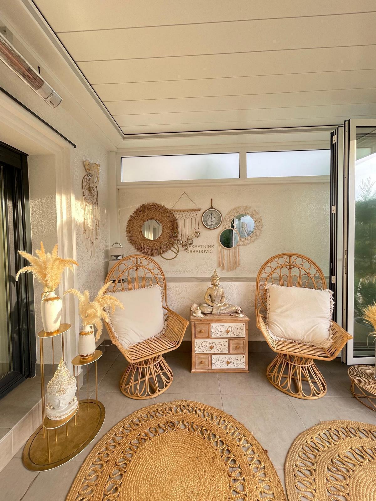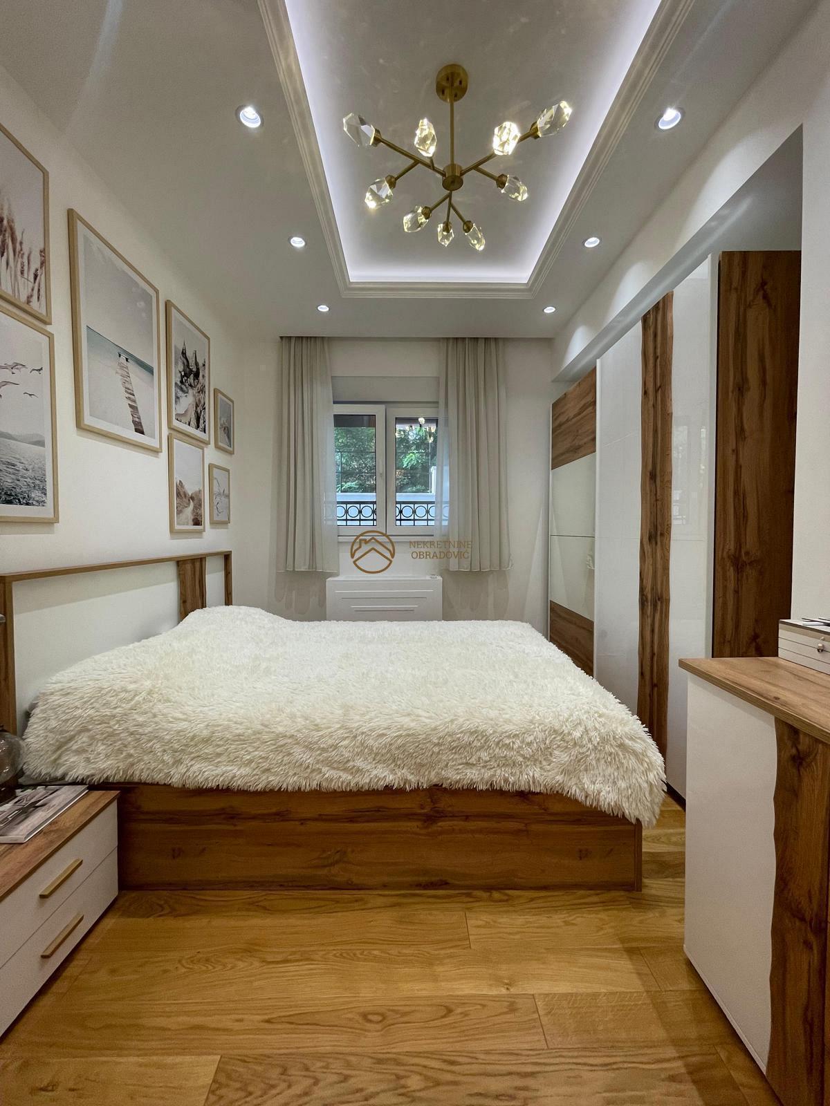 Predstavlja savrsen spoj luksuza, privatnosti i komfora. Nalazi se u manjoj, novoj zgradi sa svega nekoliko stanova, pruza osecaj zivota u kuci, sa svim pogodnostima koje donosi moderan stan. Enterijer je pazljivo osmisljen i opremljen najkvalitetnijim materijalima i brendiranim namestajem renomiranih proizvodjaca( Richmond, Zepter, Philips, Bosch). Stan poseduje najsavremeniju belu tehniku, kamin sa funkcijama grejanja i hladjenja, podno grejanje, fan coil sistem, sigurnosne kamere. Posebnu vrednost daje terasa podeljena na dva ambijenta, zatvoreni deo sa staklenim sistemom, pergolom i grejalicama za koriscenje tokom cele godine, kao i otvoreni deo sa pogledom na sumu, uredjen u toplom boho stilu, sa drvecem, palmama i zelenilom. U potpunosti opremljen, nov i odmah useljiv. Idealan je za one koji traze luksuz, mir i ekskluzivu na prestiznoj lokaciji. Dva parking mesta pod video nadzorom u dvoristu zgrade.