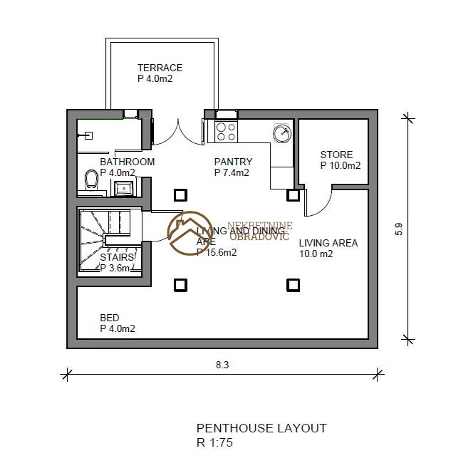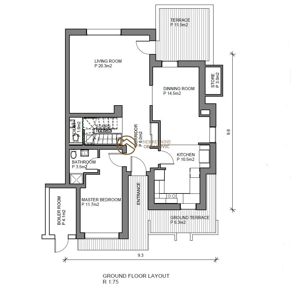 Prostire se na 3 etaze. Na prvoj etazi nalazi se manji studio, veliki dnevni boravak sa