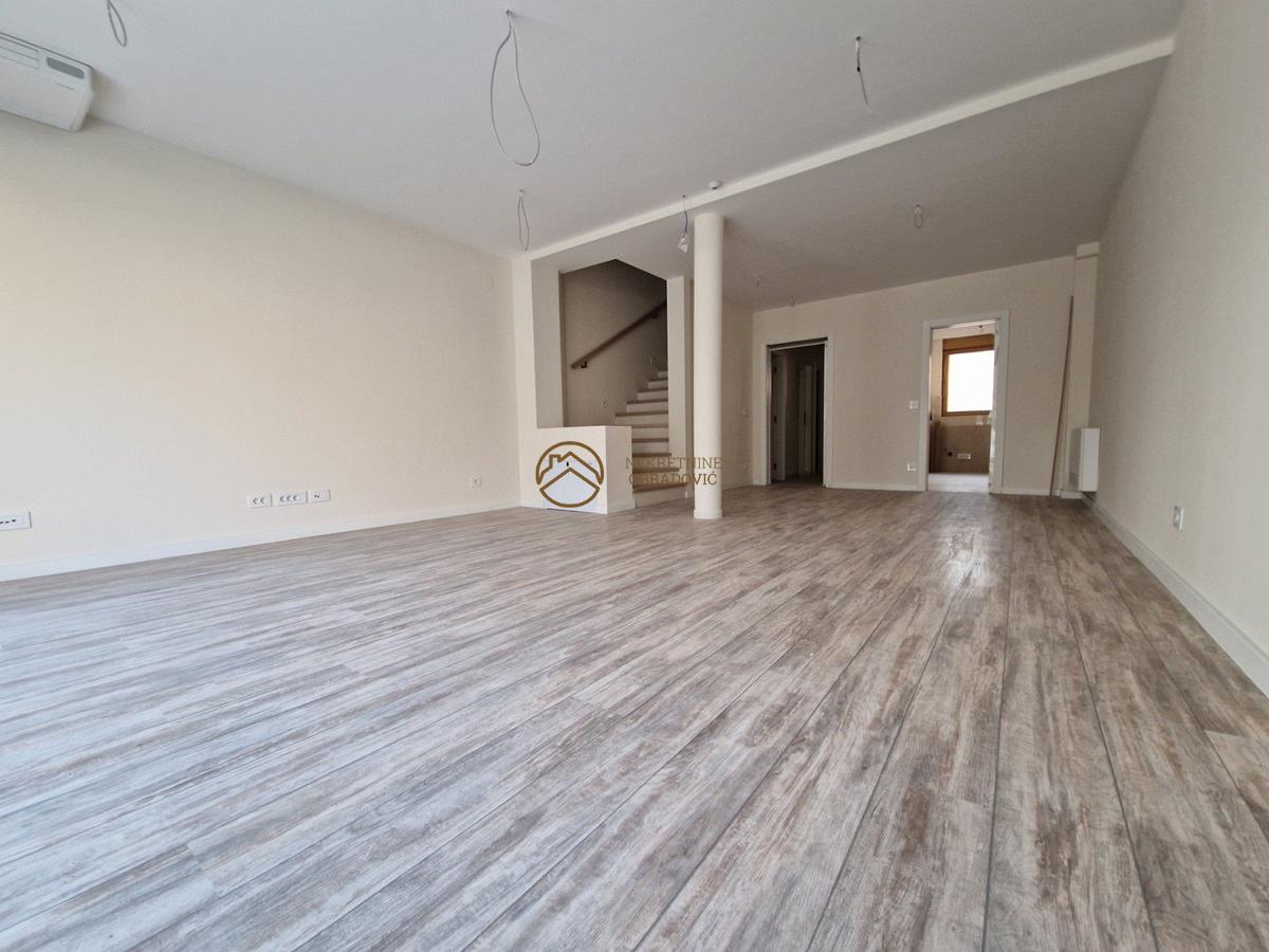 Sut - tehnicki/veserni prostor, zasebna prostorija. Pr - ulazni prijem, dnevni prostor sa trpezarijom, kuhinja, toalet, terasa/dvoriste. Sprat - 2 spavace sobe, obe sa kupatilom. PS- 2 spavace sobe, kupatilo, terasa Stepenista, degazmani, lift, k