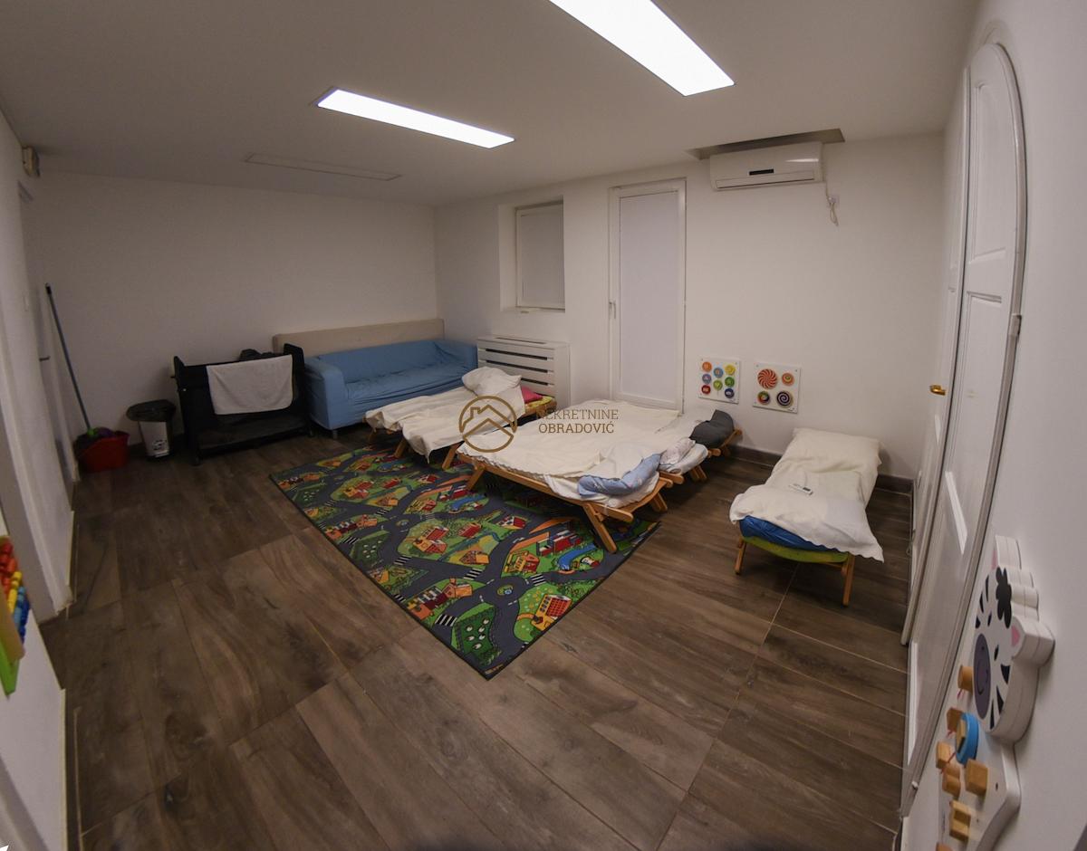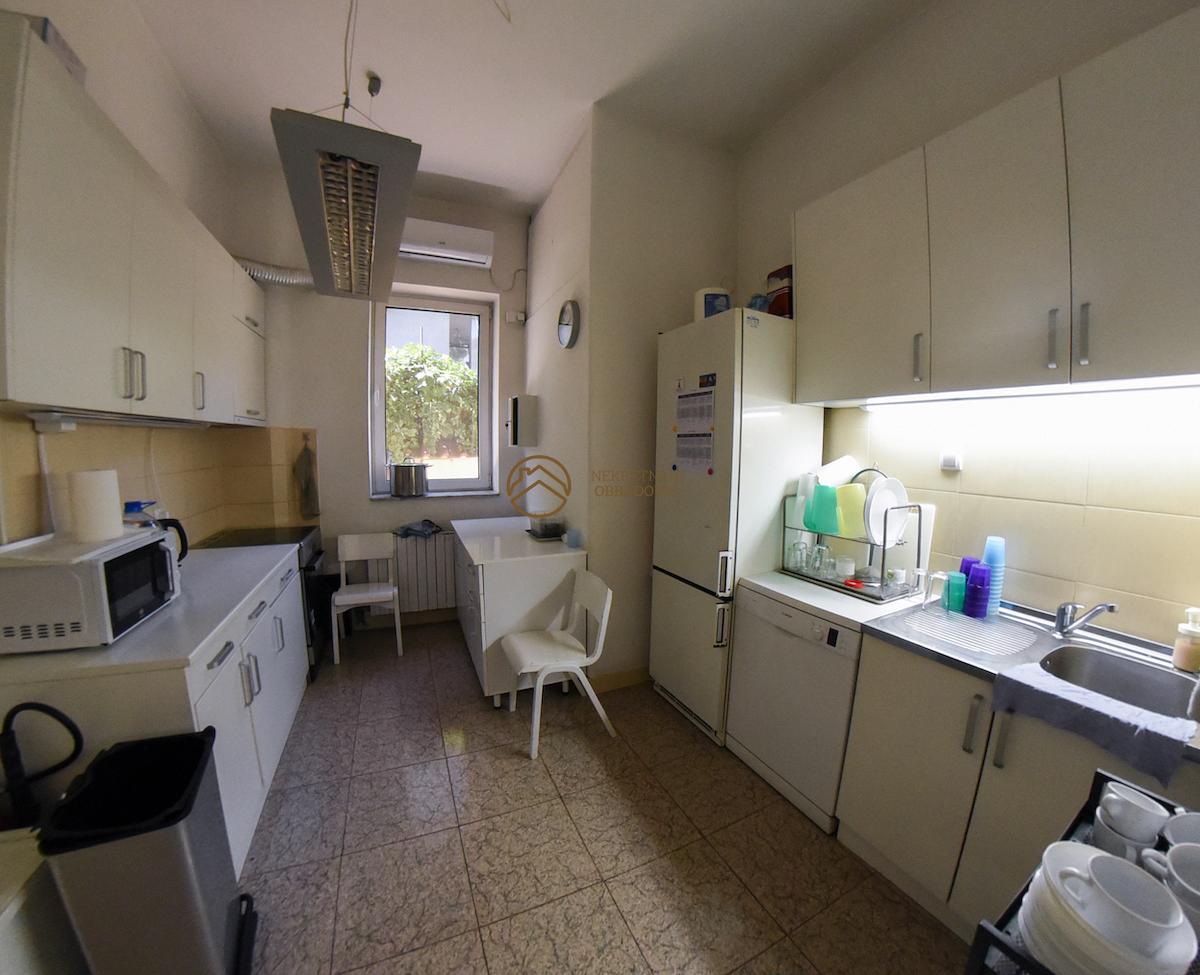 Prizemlje – 4 prostorije, ostava, 2 toaleta. Prvi sprat – ulaz, 4 prostorije, 2 toaleta, kuhinja, terasa, dvoriste. Drugi sprat – velika open space prostorija, kuhinja, kupatilo, kancelarija, 4 ostave.