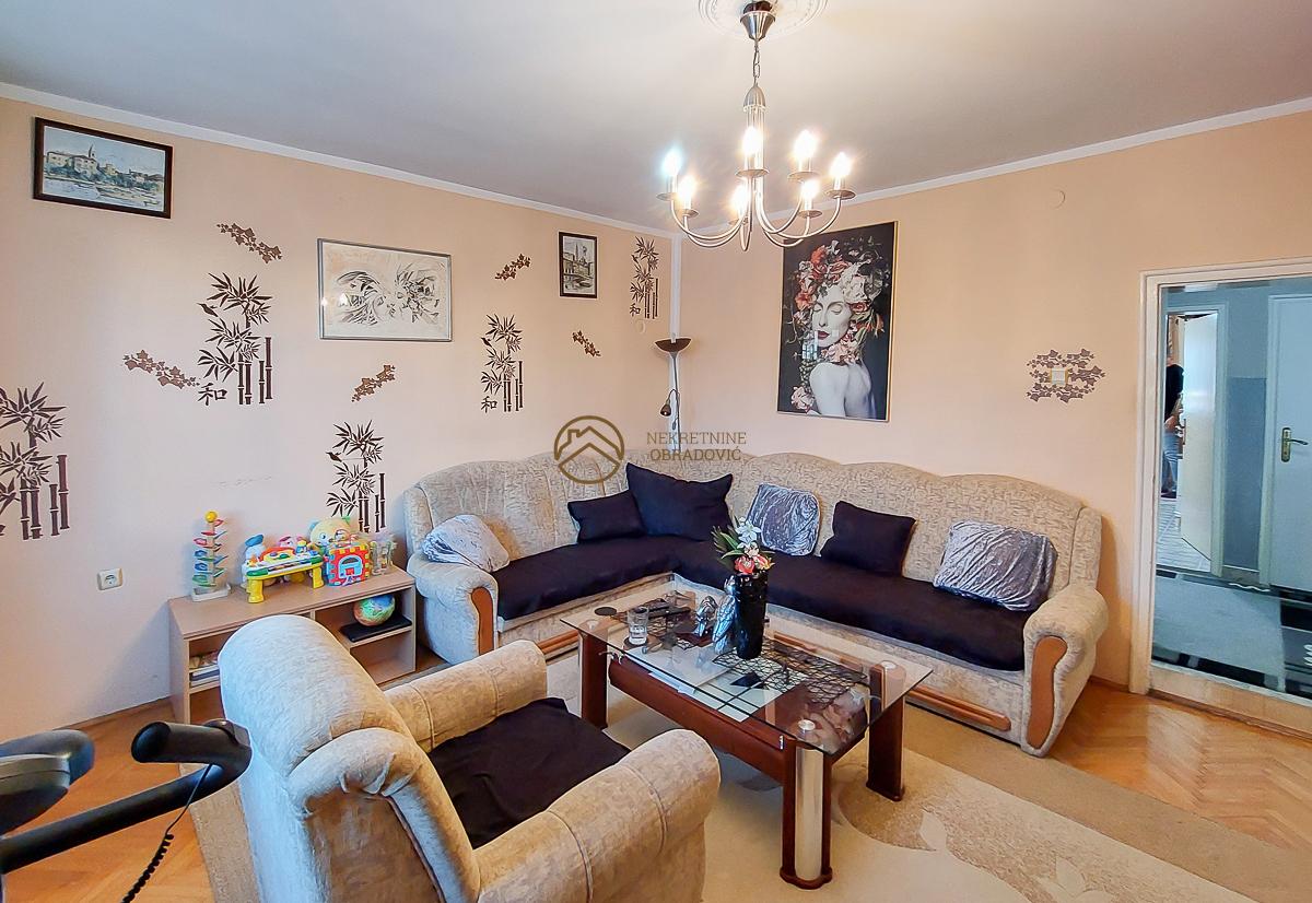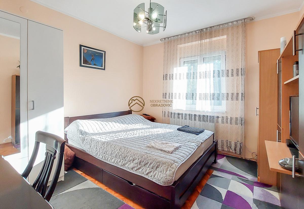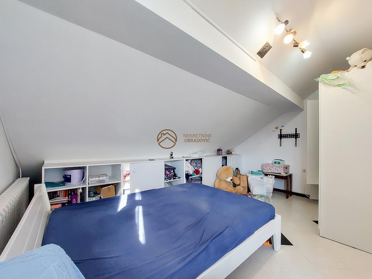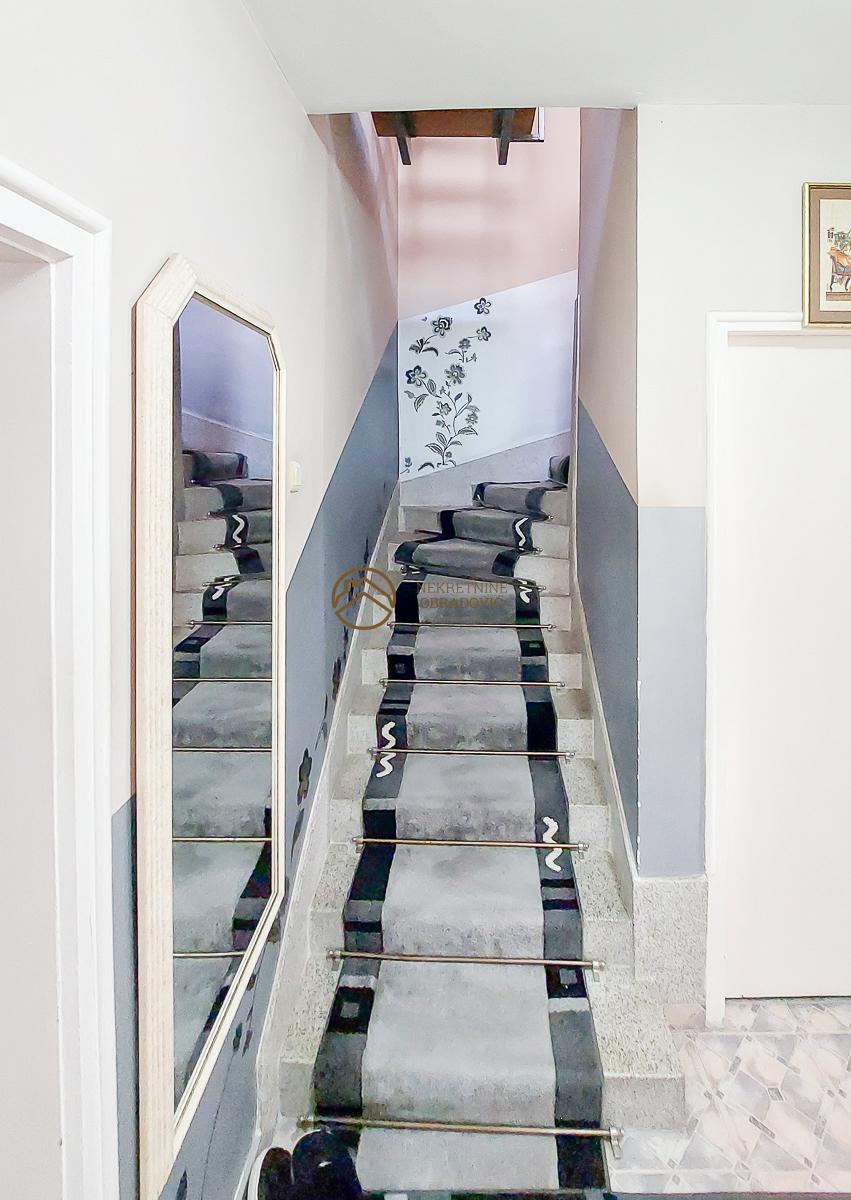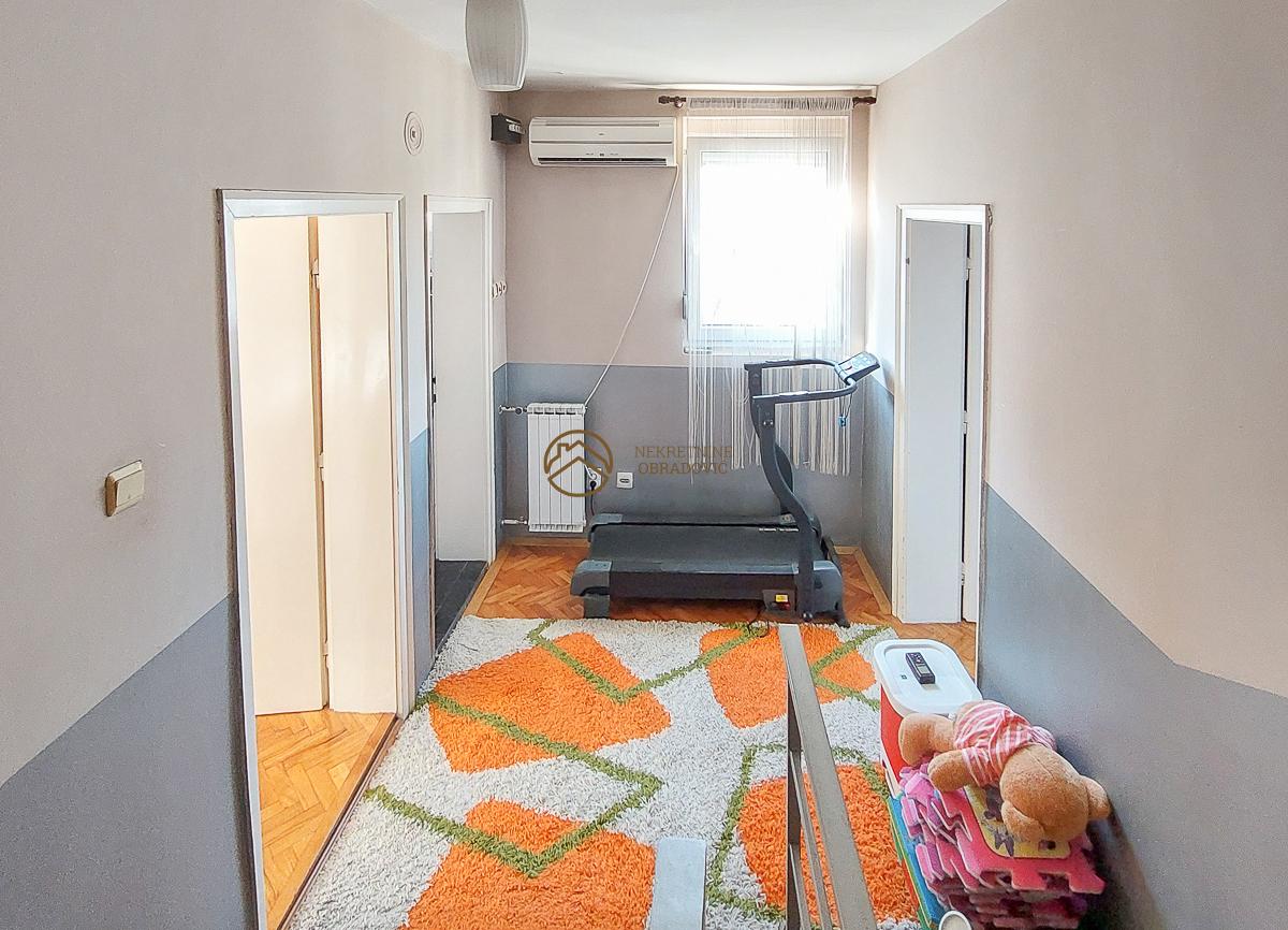 clanove porodice. U sredisnjem delu i u potkrovlju kuce se nalazi prostran trosoban stan sa dve spavace sobe,