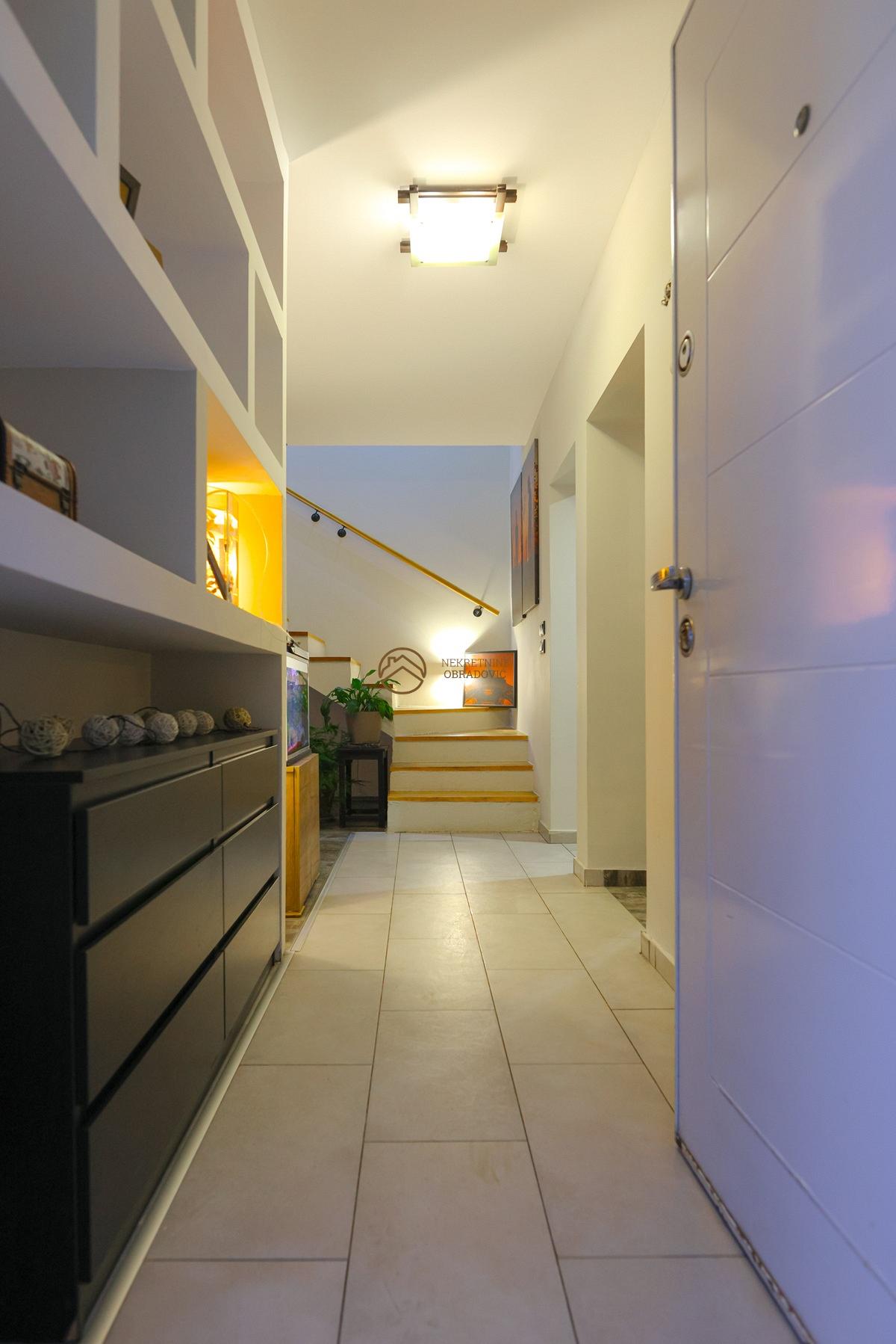 Donja etaza: Dnevni boravak sa trpezarijom, kuhinja, kupatilo, terasa. Gornja etaza: Dnevni boravak, dve spavace sobe, kupatilo, terasa.