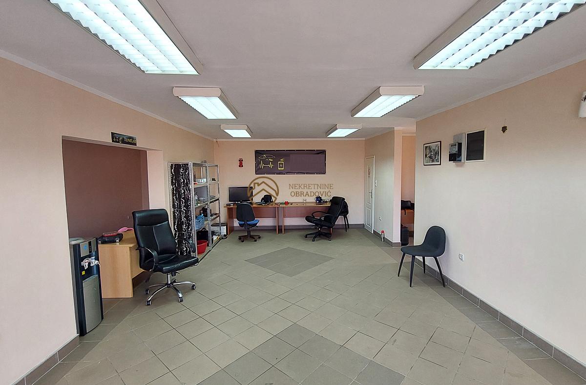Izlozbeni prostor,kancelarija,stambeni prostor sa spavacom i dnevnom sobom, tri toaleta,dve terase garaza, radionica.