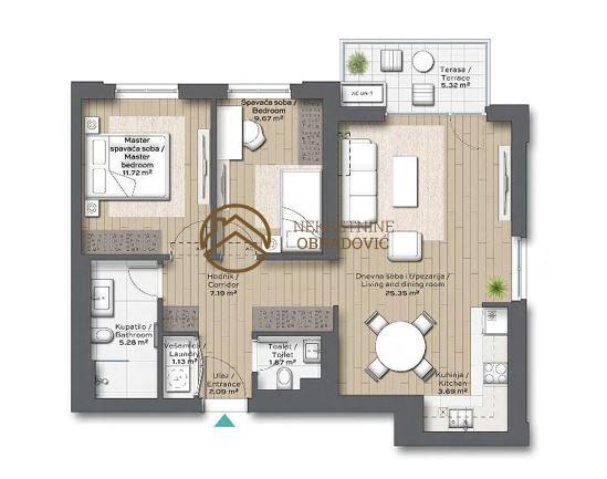 U ponudi je dvostrano orijentisan trosoban stan, povrsine 73m2, pozicioniran prema