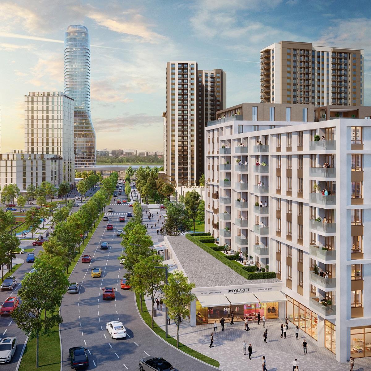 BW Quartet 4, nova zgrada u okviru projekta Beograd na vodi, nalazi se u centralnom delu kompleksa, u zoni nize gradnje, preko puta Palate pravde i Savskog parka.