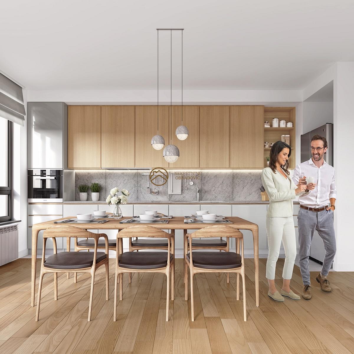 Na devet spratova rasporedjeno je 114 luksuzno opremljenih stambenih jedinica, visine plafona 2,8m.