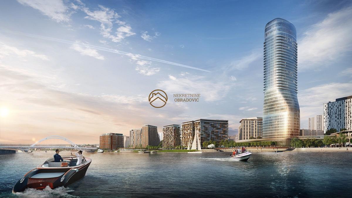 Prodajemo ekskluzivan dvosoban stan u zgradi Kula Beograd - Beograd na vodi. Potpuno nov i intiman koncept zivota, u samom srcu Beograda. Kula Beograd, sa svojim arhitektonskim i tehnolosko - inovativnim resenjima, zamisljena je kao najprestiznija i najluksuznija gradjevina u ovom delu Evrope. Visoka je 168 metara, poseduje 42 sprata, a rezidencijalno - stambeni kompleks se prostire od 14. do 39. etaze. Fascinantan pogled koji se pruza iz stana na panoramu Beograda cini ovu nepokretnost neprikosnovenom. Zavrsna obrada svake stambene jedinice je prvoklasna, od pazljivo biranih i najluksuznih materijala. Posebna pogodnost za stanare je mogucnost koriscenja svih sadrzaja koji se nalaze u okviru St. Regis Belgrade hotela. Doplata za garazno mesto.