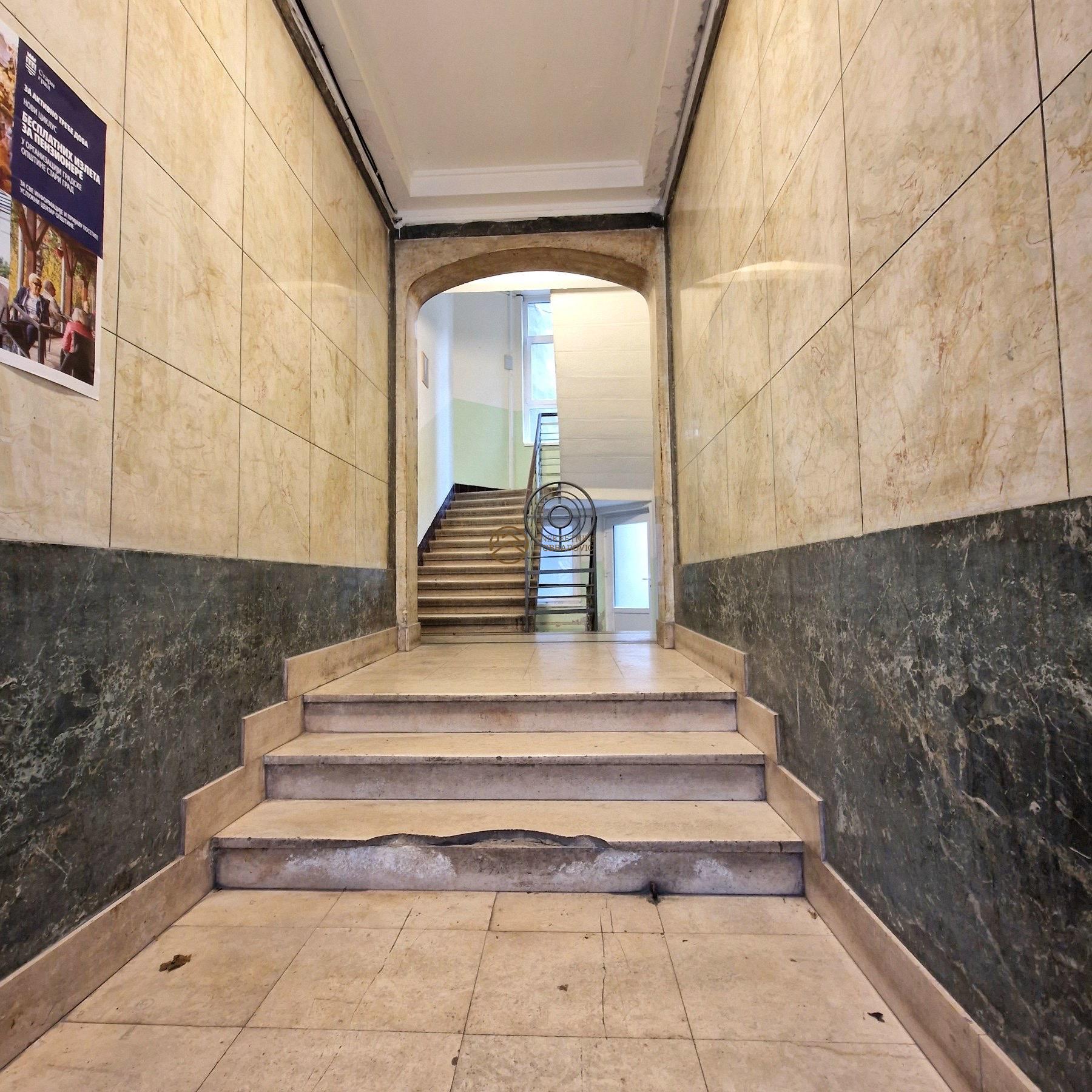 Smestena je u visokom prizemlju, u lepoj i ocuvanoj zgradi iz predratne epohe,