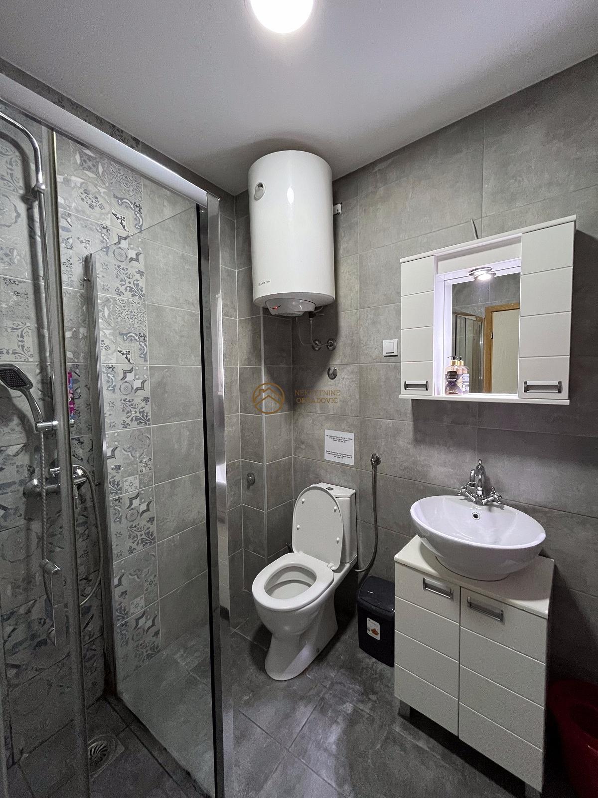 U prvom apartmanu, kupatilo, hodnik, velika soba,kupatilo. kuhinja sa trpezarijom. U drugom apartmanu hodnik, velika soba sa spavacim odeljkom, kuhinjom i trpezarijom i kupatilo.