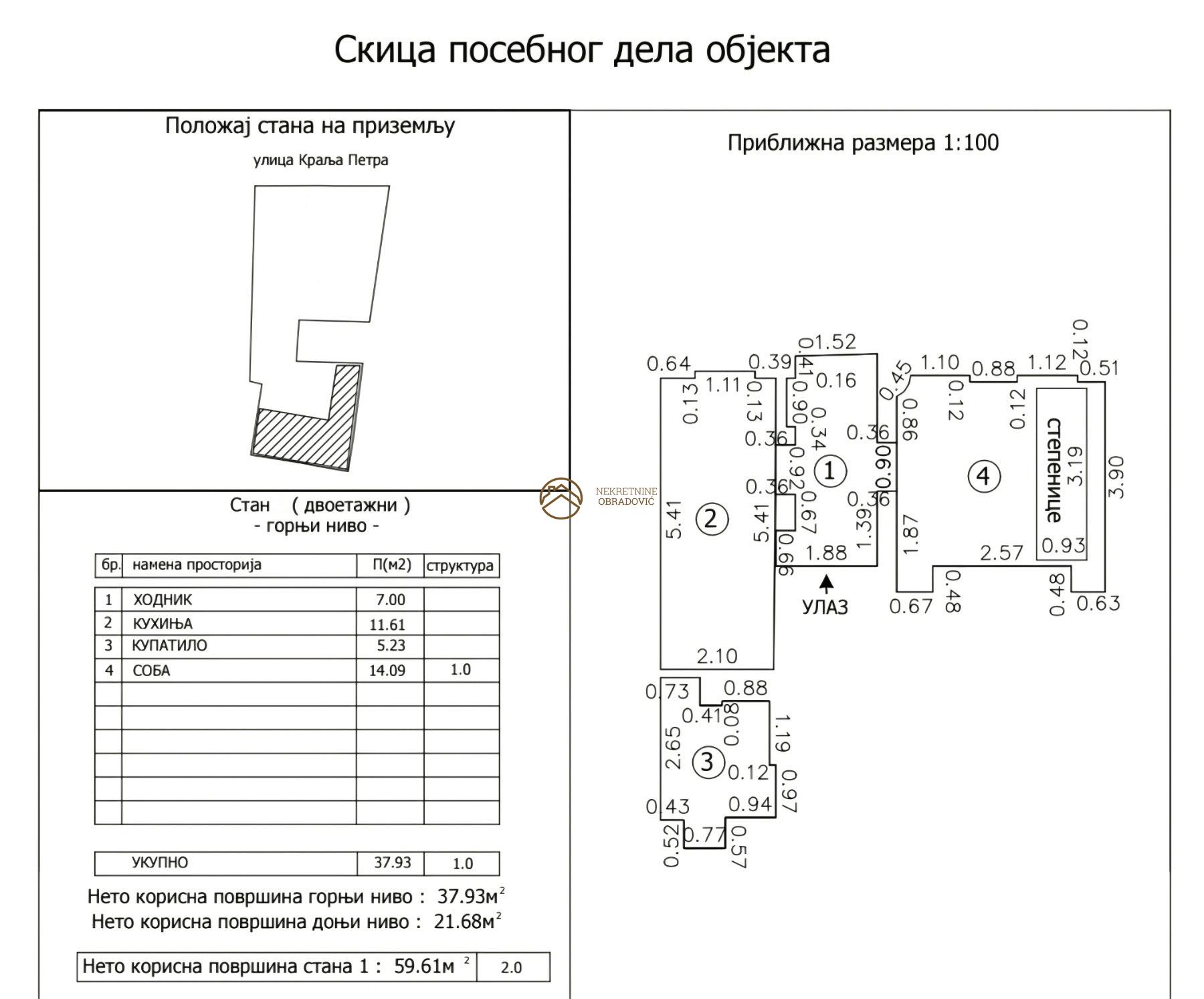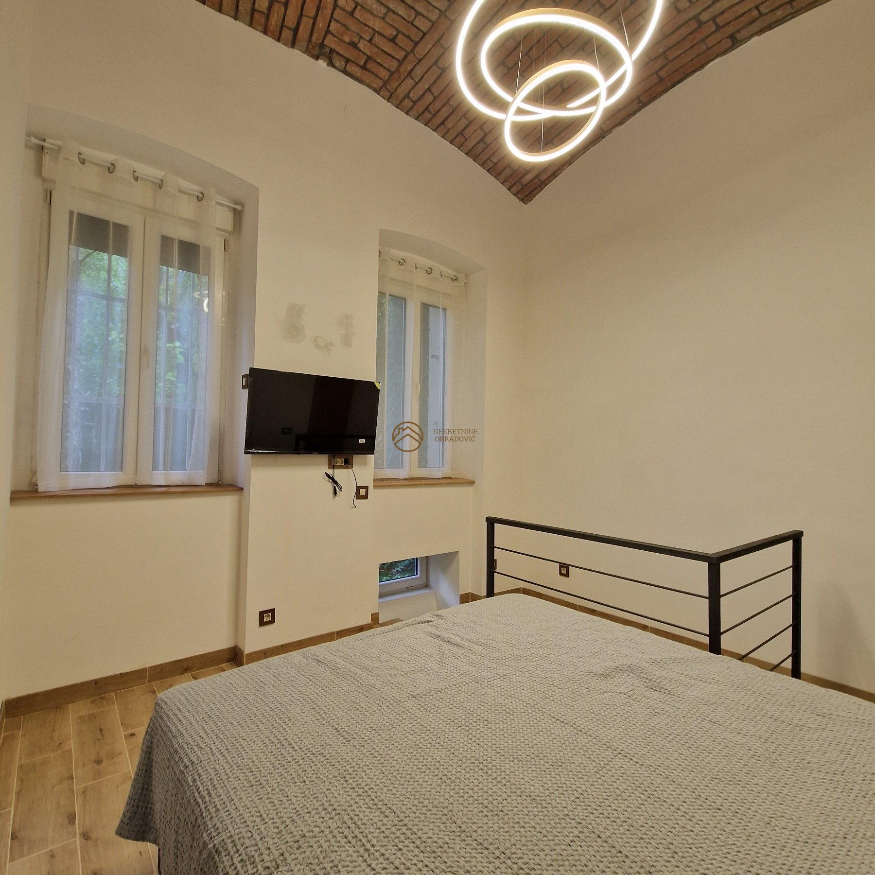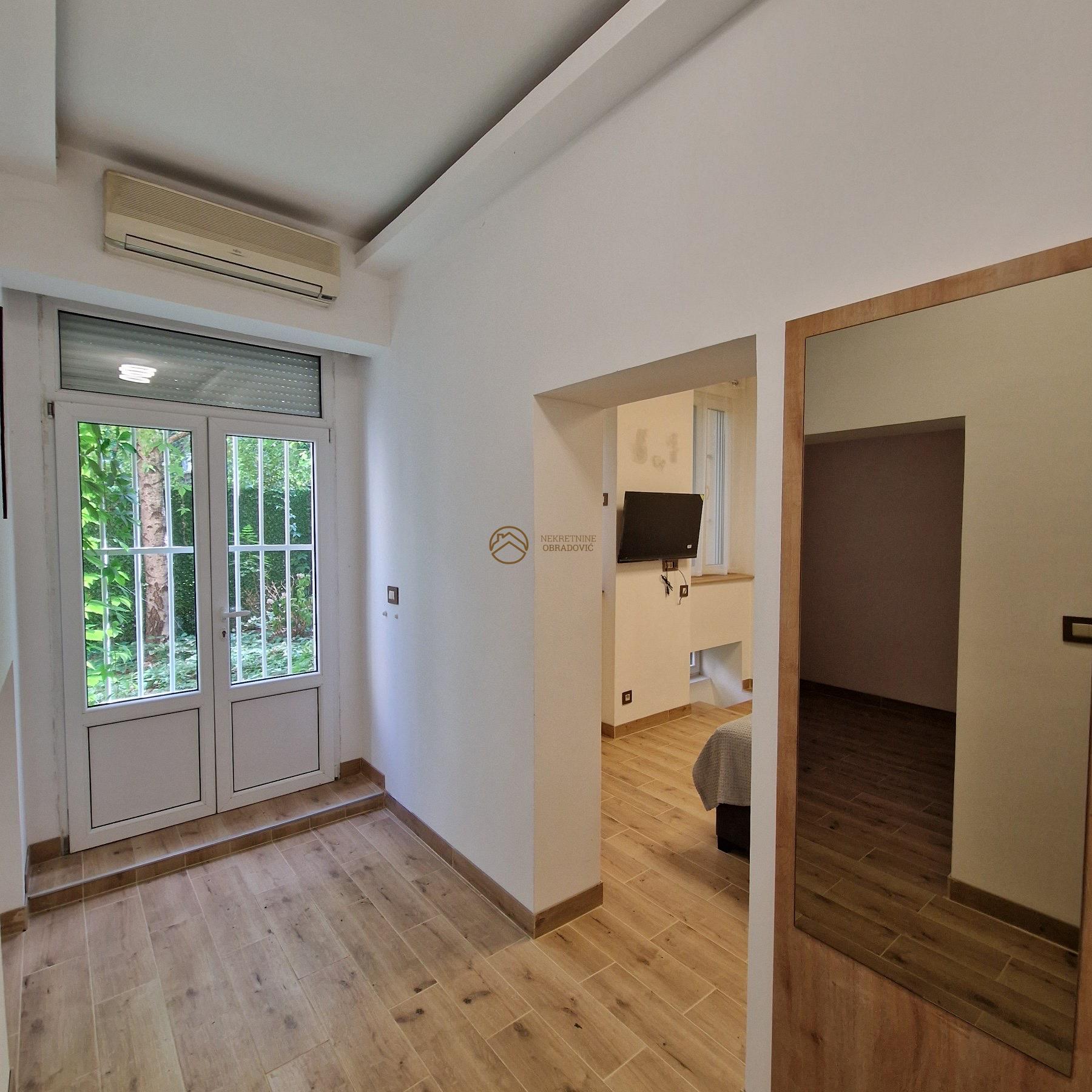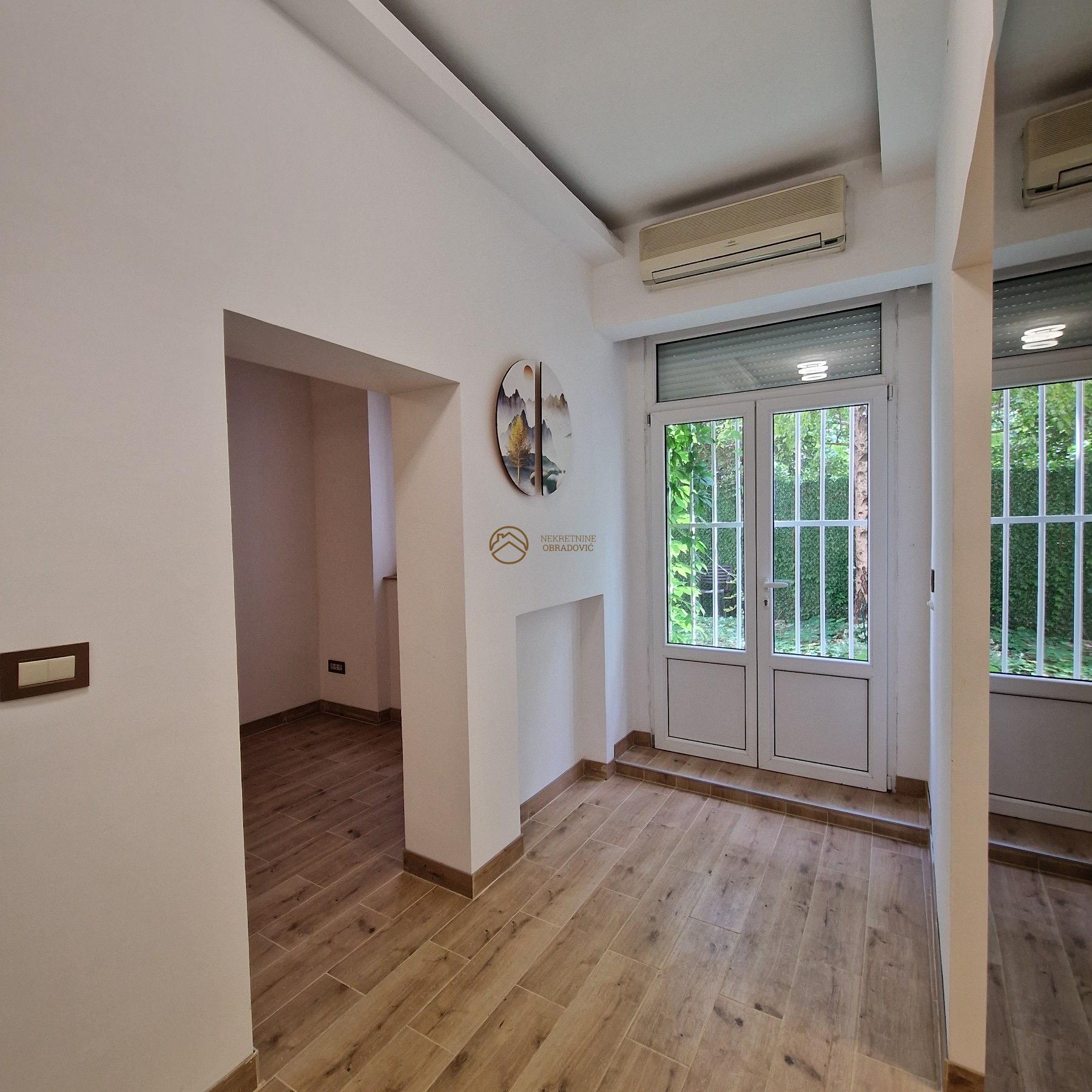 Unikatan stan u srcu Beograda, povrsine 38m2(po izvestaju geodete), uknjizen na 36m2, sa pravom koriscenja vrta od 50m2 i apartmanom u suterenskoj etazi od 22m2(pripojen stanu stepenistem, po potrebi moze da se vrati u prvobitno stanje).