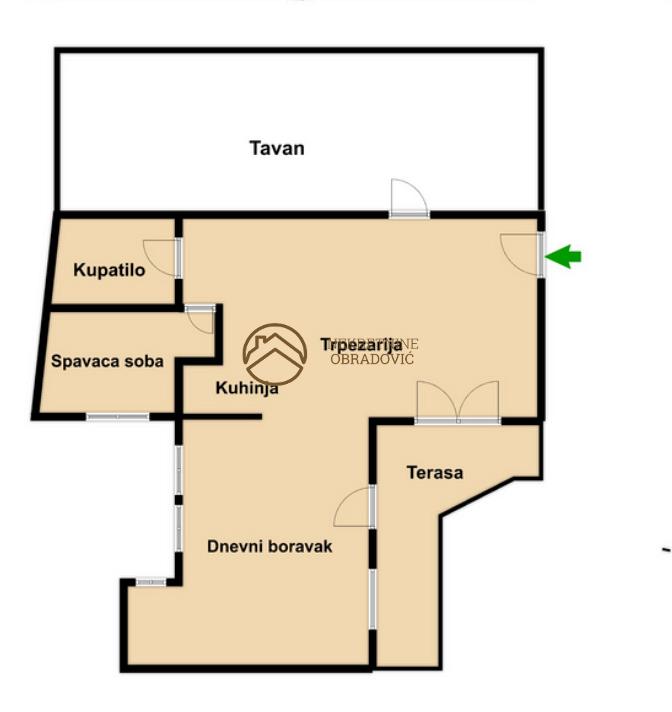 Nekretnina koristi i deo tavanskog prostora, od 60m2, kome se pristupa direktno iz