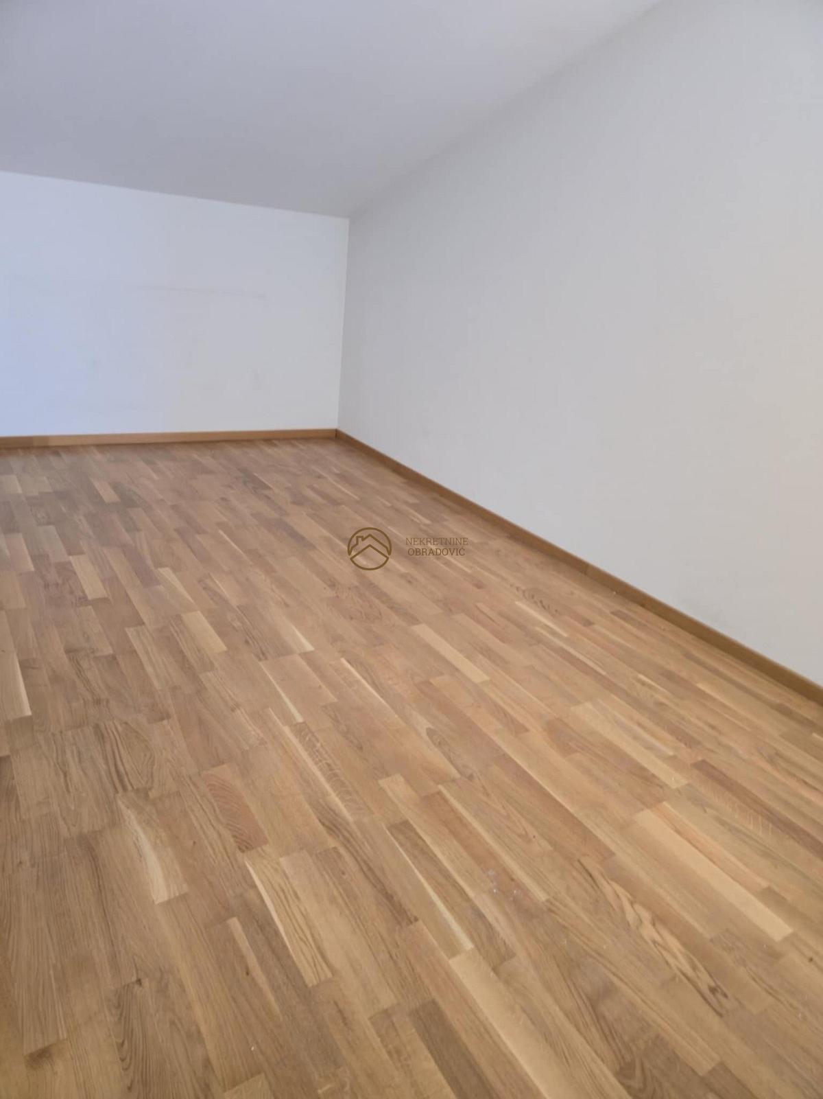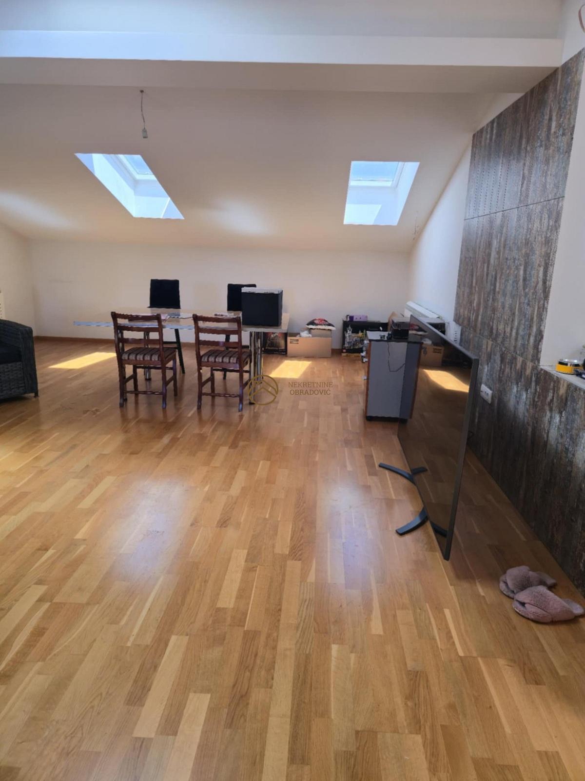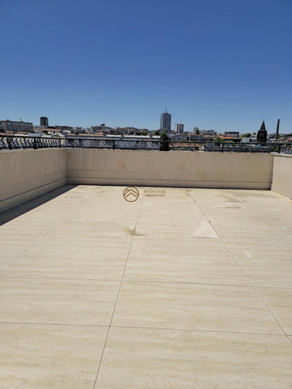 Dnevna soba sa kuhinjom i trpezarijom, 3 spavace sobe, toalet, 2 kupatila, 2 francuska balkona i terasa povrsine 44 m2.