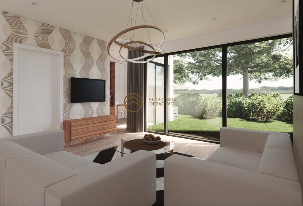 Toplotne pumpe, visokokvalitena italijanska keramika, sanitarije i alu-spoljna stolarija, hra-stov parket, Bosal sigurnosna ulazna vrata uz veoma komfornu garazu, daju buducim sta-narima mogucnost maksimalnog uzitka.