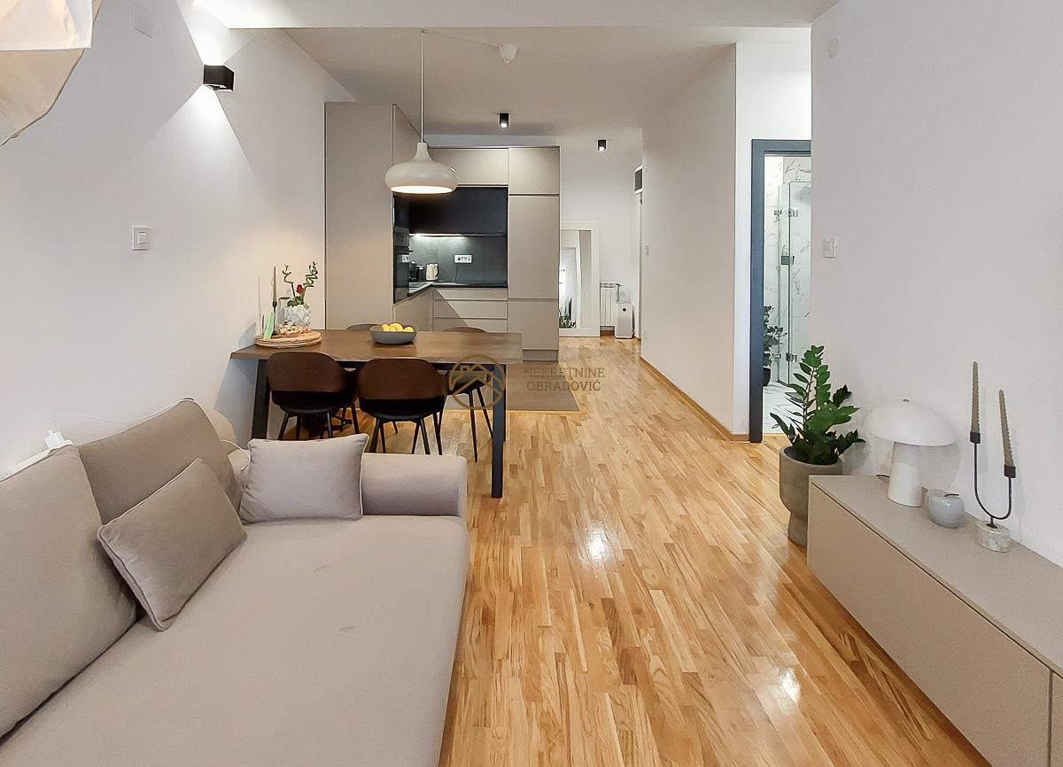 Vrhunski materjali i sanitarije su ugradjeni u stan kao i nova ugradna kuhinja radjena po meri.