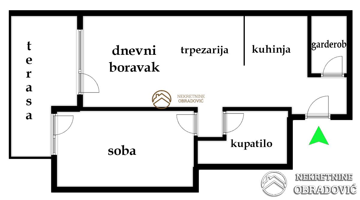 Stan je dvorisno orijentisan i bez buke, ulaz je sa prizemlja ali je visina terase i prozora prvi sprat.