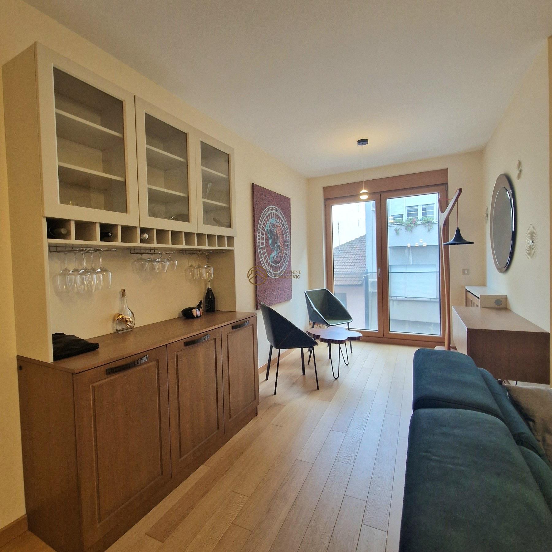 na priblizno impresivnih 50m2, obuhvatajuci dnevni boravak, trpezariju, modernu