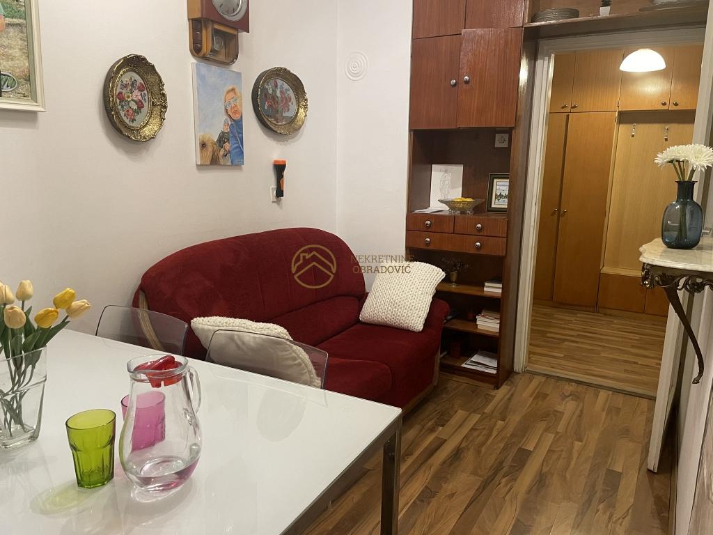 Jednosoban stan na odlicnoj lokaciji na Konjarniku! U papirima se vodi kao visoko prizemlje, dok je realna visina prvog sprata (ispod stana se nalazi drugi stan).Stan se nalazi u mirnoj i urednoj zgradi okruzenoj zelenilom, povucen od glavne saobracajnice, a istovremeno u neposrednoj blizini svih vaznih sadrzaja – nadomak TC Beo i Lidla. Raspored je funkcionalan, a lako se moze adaptirati u jednoiposoban pretvaranjem trpezarije u spavacu sobu. Nekretnina je u izvornom, odlicno ocuvanom stanju. Stan je uknjizen i odmah useljiv.