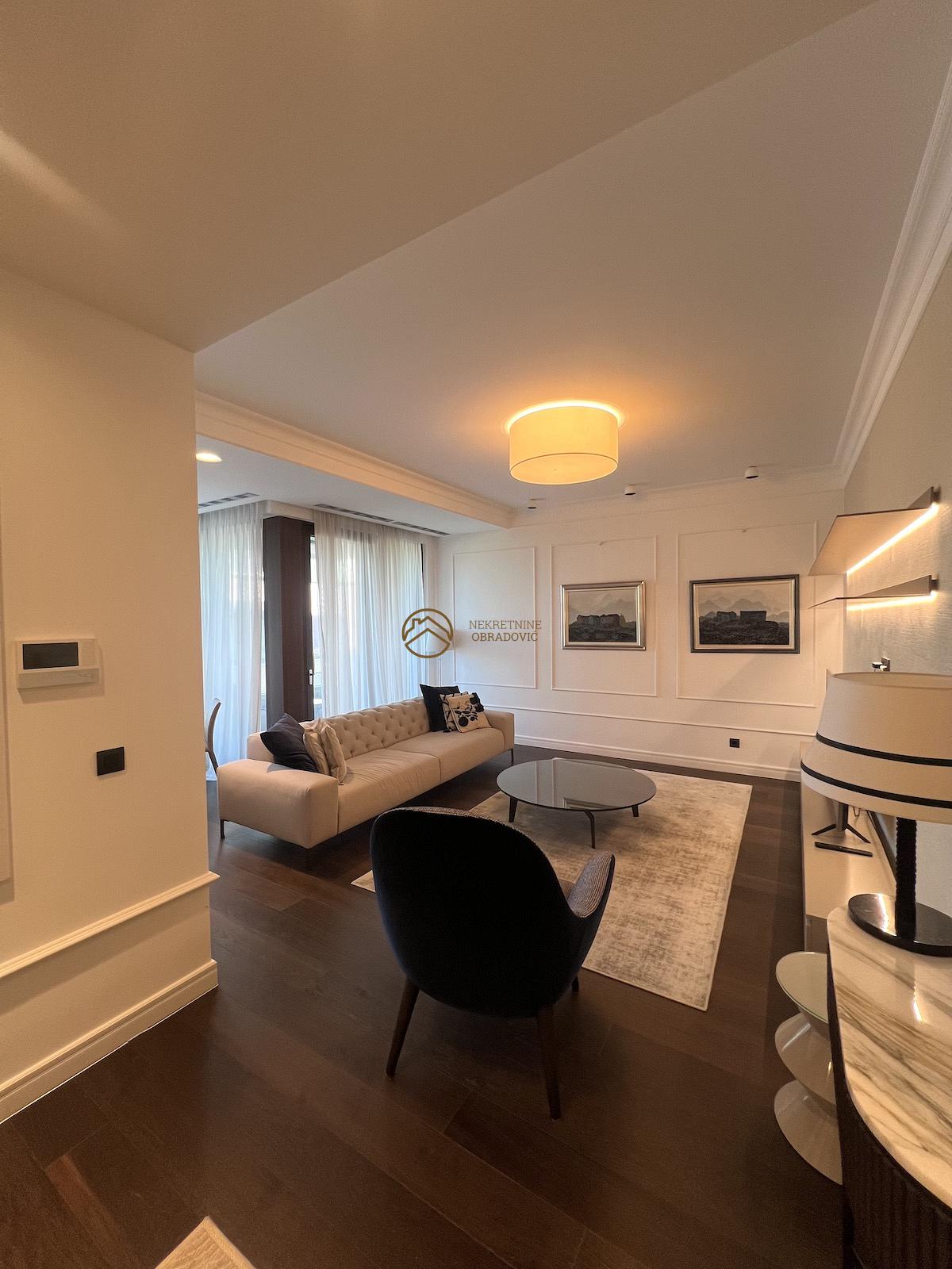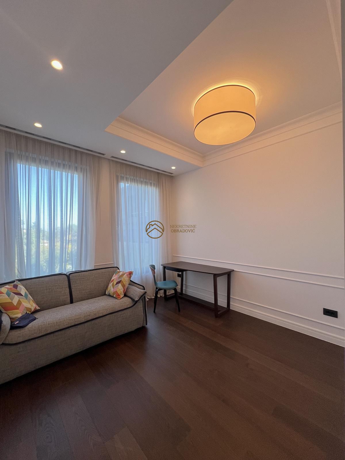 U visokokvalitetnom, modernom objektu, izdaje se luksuzan, trosoban stan u neposrednom okruzenju diplomatske kolonije, na Dedinju.
