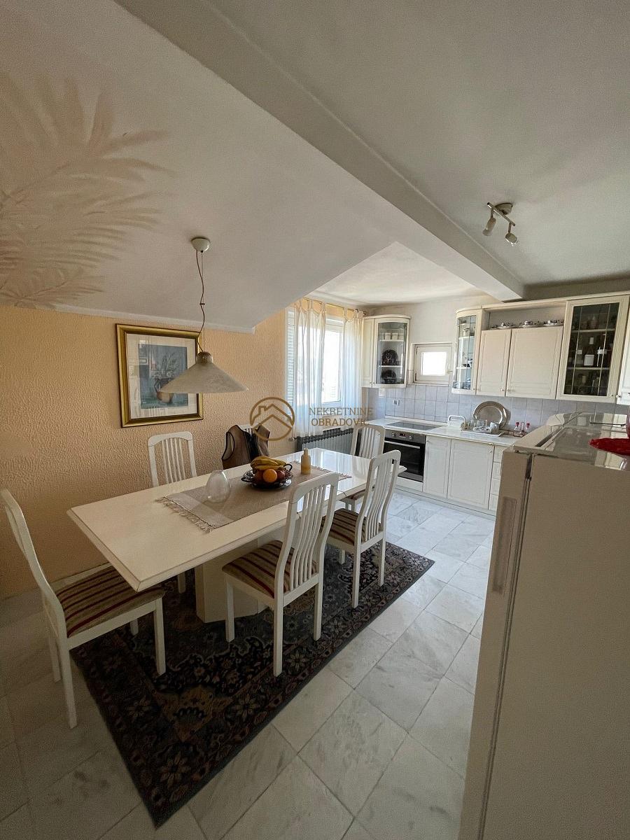 Kvalitetno gradjena visenamenska kuca na placu od 6 ari, pozicionirana tako da se u frontalnom delu ka ulici nalazi prostrani parking prostor za vise automobila, dok se iza kuce prostire lepo intimno dvoriste sa oko 2,5 ari zelene povrsine I letnjikovcem. Kuca u osnovi ima 150m2 I ukupno 4 etaze, pri cemu se na svakoj etazi nalazi zaseban stan sa mogucnoscu povezivanja u jedinstvenu celinu. Kao I vecina kuca I letnjikovac I kuca su uknjizeni na povrsinu kojom zauzimaju zemljiste, ali je moguce upisati punu kvadraturu koja se jasno vidi u upotrebnoj dozvoli. U kuci se nalazi kotlarnica sa mogucnoscu grejanja na struju, cvrsto, tecno I solarno grejanje.
