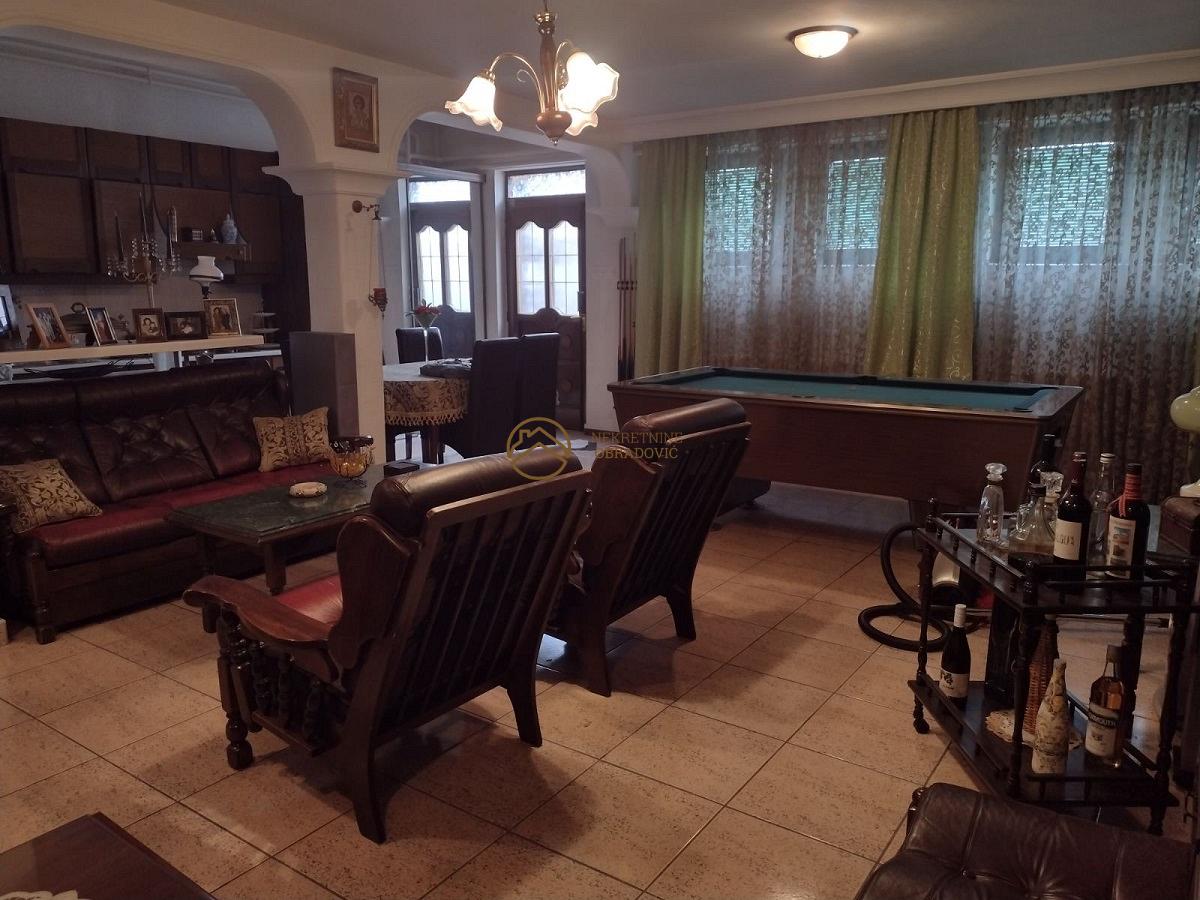 Samostojeca nekretnina, nalazi se na savrsenoj lokaciji u blizini zgrade Pinka. Pozicionirana je u mirnom delu ulice koji je iz bezbednosnih razloga(rezidencijalni sadrzaj) zatvoren za saobracaj. Stanari i gosti(uz najavu) imaju mogucnost koriscenja. Kuca raspolaze sa 415m2 bruto povrsine, gradjena je kvalitetno i po projektu pocetkom 90tih godina. Sastoji se od dva identicna troetazna stana(suteren, visoko prizemlje, sprat), sa po dva ulaza(glavni i iz suterena), iznad je tavan koji pokriva krov na dve vode. Spoljasnost je oblozena zutom fasadnom ciglom, koja oslikava duh tog perioda arhitekture. Moguce su razne rekonstrukcije i adaptacije kako bi buduci vlasnik prilagodio nepokretnost svojim potrebama i zeljama. Plac je lepog oblika 26x13m, sa kolskim i pesackim ulazom, u zadnjem delu se nalazi pomocni objekat. Mogucnost dodatnog, elegantnog vrta, takodje i manjeg bazena. Uknjizeno bez tereta i zabelezbi, preporuka.