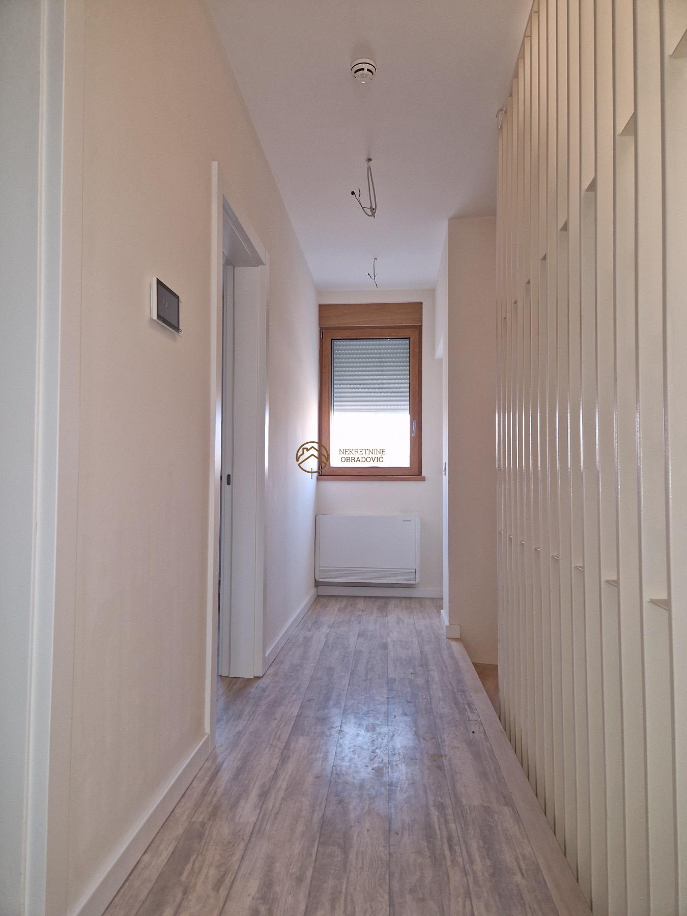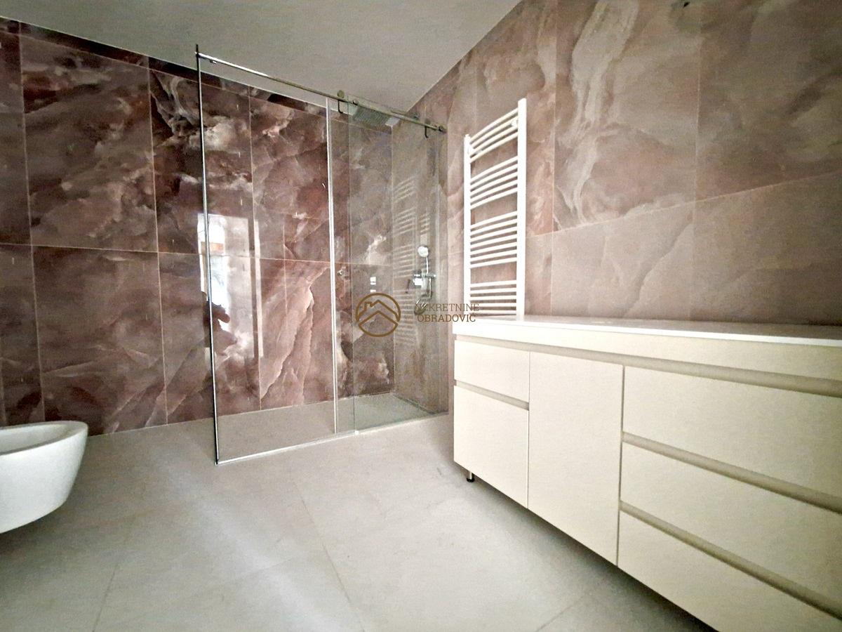 Sut - tehnicki/veserni prostor, zasebna prostorija. Pr - ulazni prijem, dnevni prostor sa trpezarijom, kuhinja, toalet, terasa/dvoriste Sprat: 2 spavace sobe, obe sa kupatilom. PS: 2 spavace sobe, kupatilo, terasa. Stepenista, degazmani, lift Kr