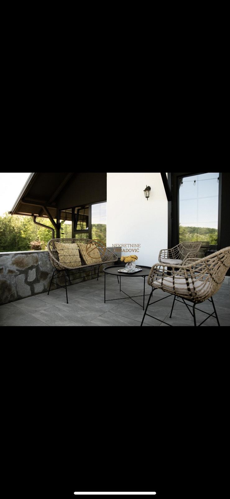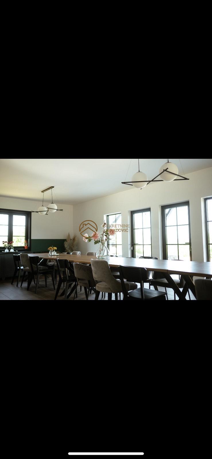 Suteren: Kuhinja, pomocna kuhinja, kotlarnica (pec na Pelet) podrum, toalet. Prizemlje: prirucna kuhinja, veliki dnevni boravak, soba za relaksaciju (dva toaleta). Prvi sprat: dve velike spavace sobe sa kupatilom.