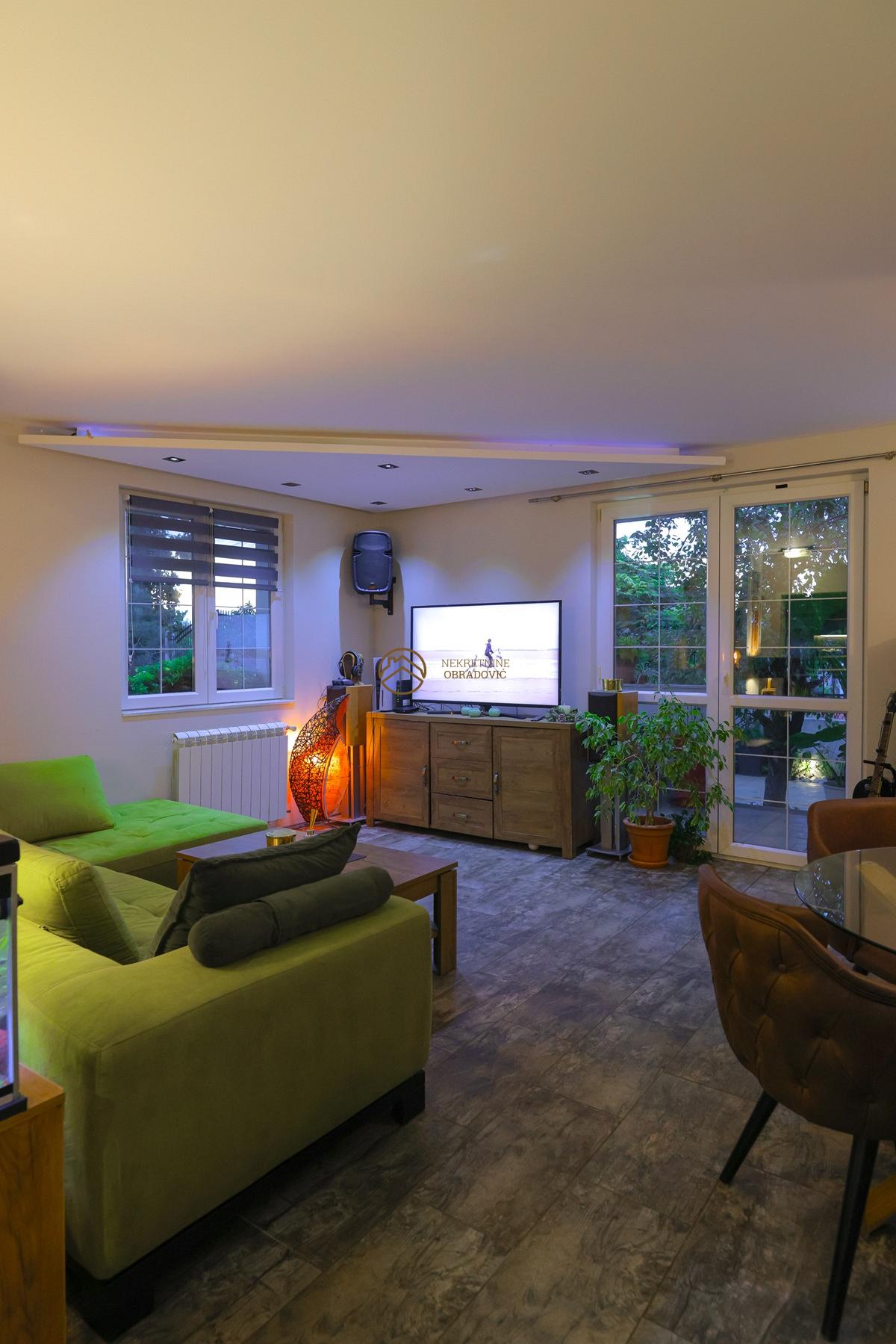 Na prodaju novija, potpuno namestena kuca, sa velikim dvoristem i zelenilom. Kuca je
