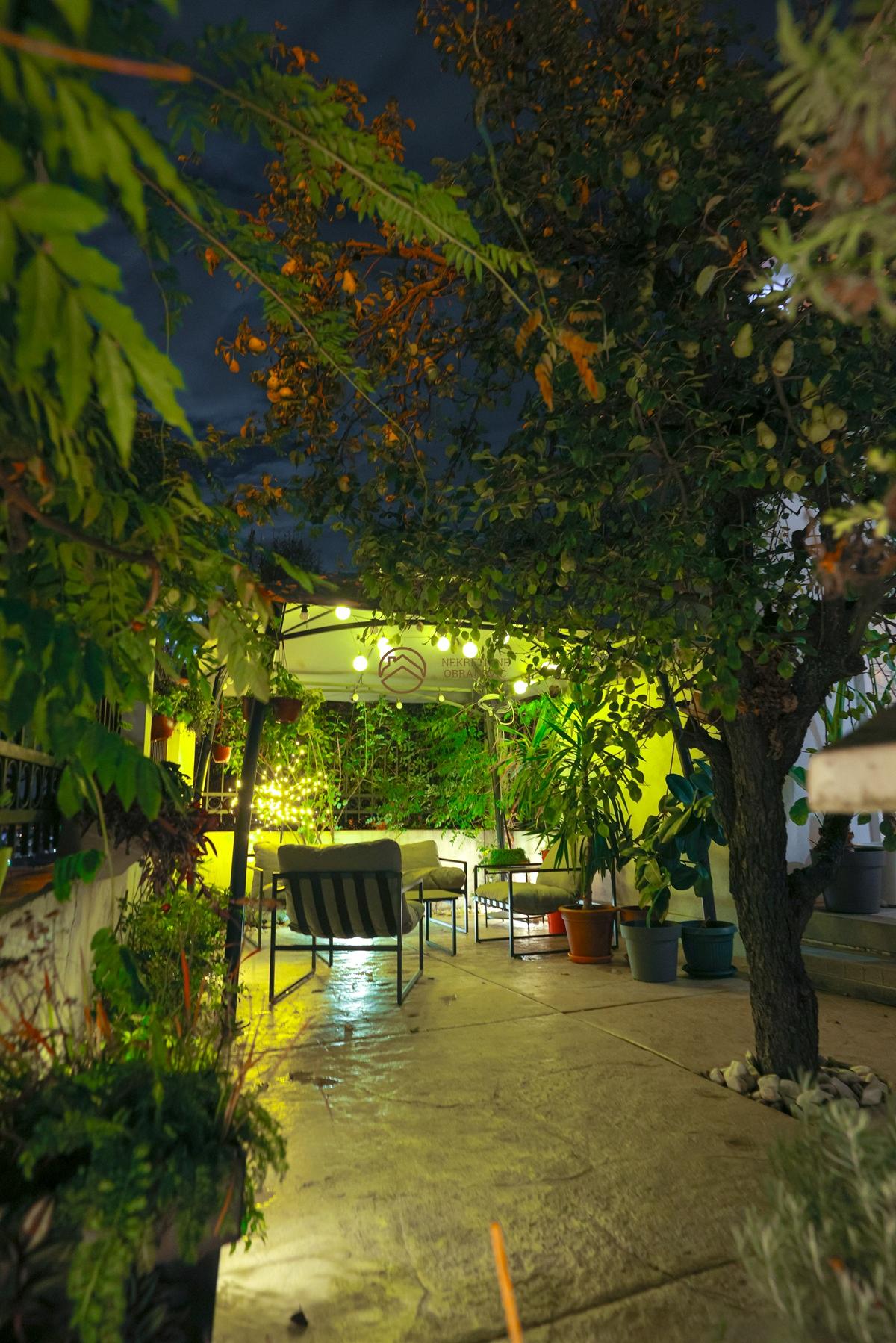 Dvoriste, 400m2, potpuno ogradjeno, sa puno zelenila i travnjakom. Veliki paviljon za