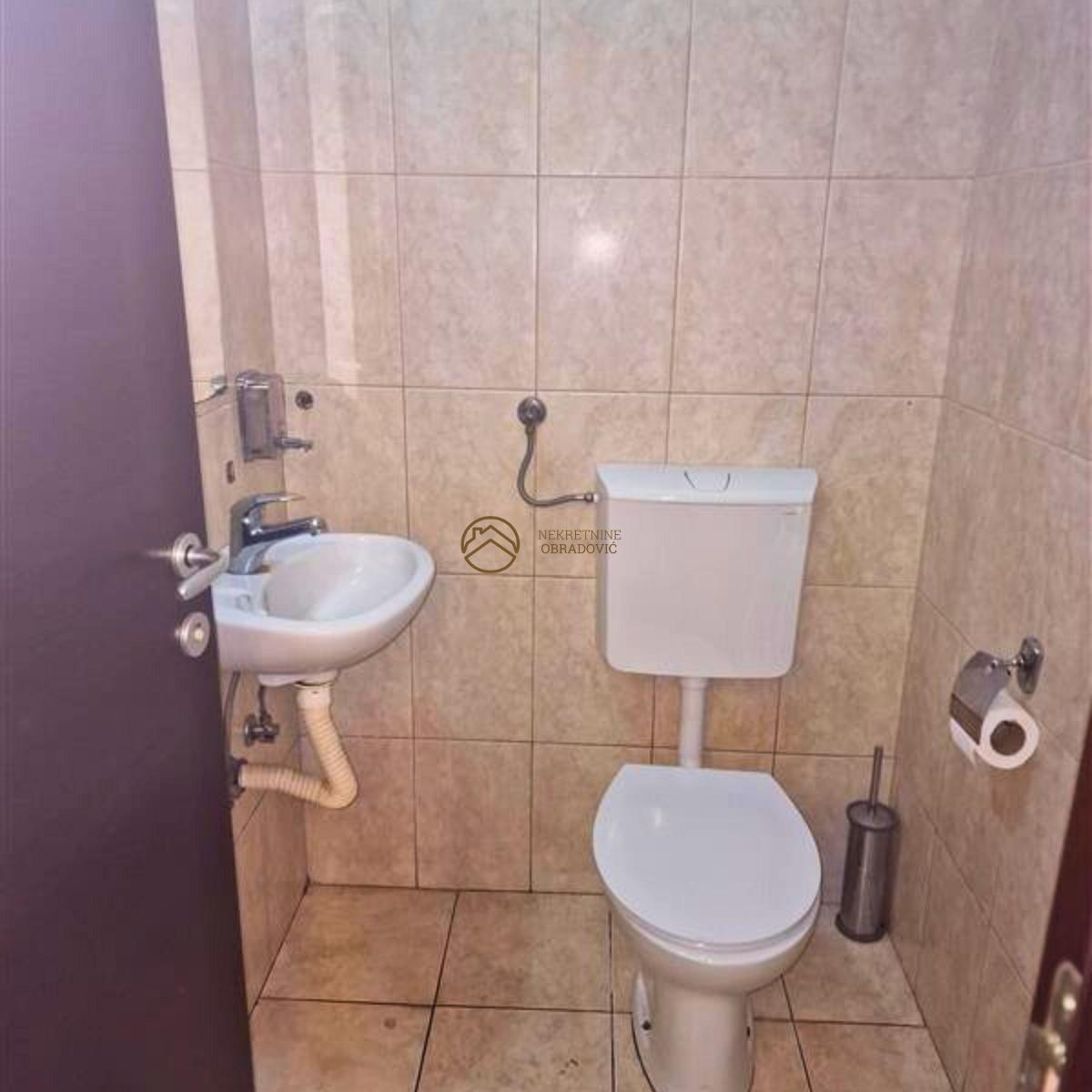Velika prostorija, kuhinja, toalet, ostava/sluzbena prostorija i basta od 9 m2.