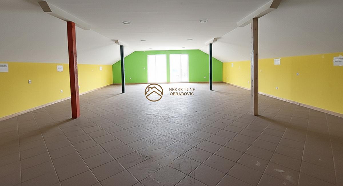 Izlozbeni prostor,kancelarija,stambeni prostor sa spavacom i dnevnom sobom, tri toaleta,dve terase garaza, radionica.
