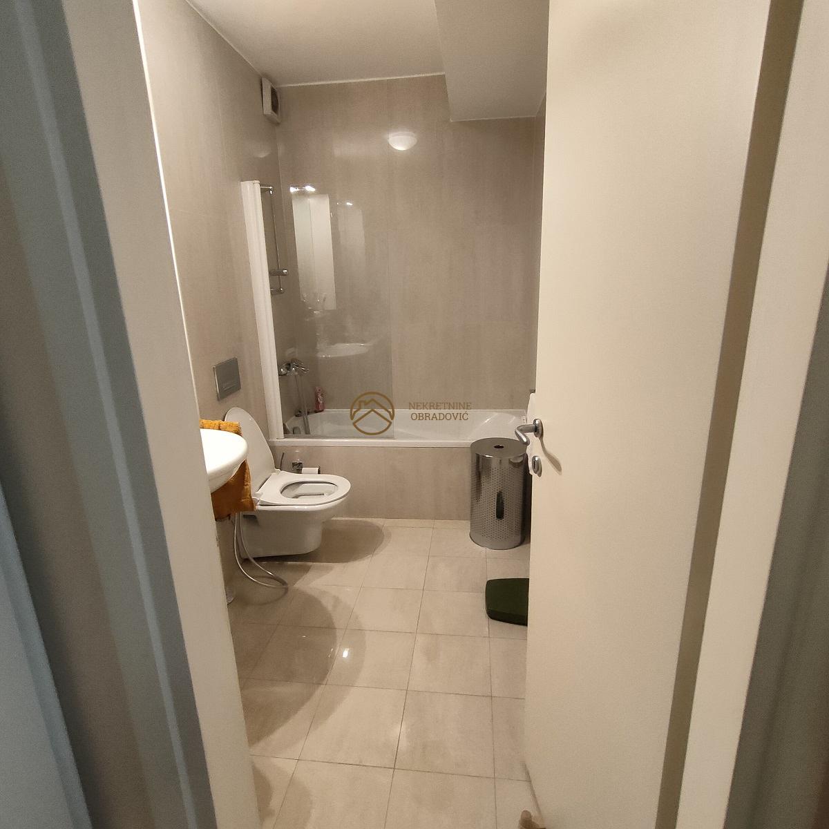 Predsoblje, kuhinja, trpezarija, dnevni boravak, prostrana terasa, dve spavace sobe, kupatilo.