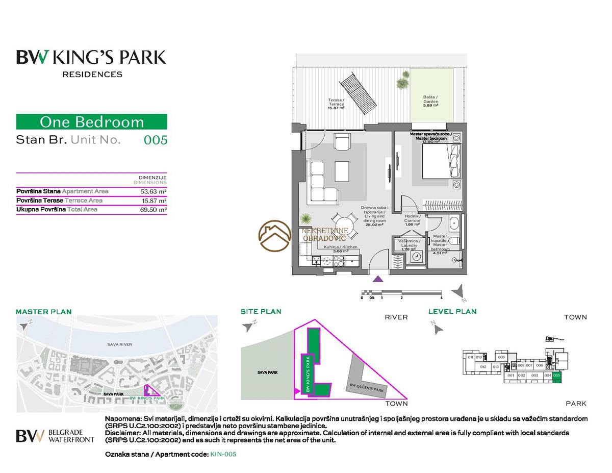 Predstavljamo ekskluzivan stan sa dvoristem u okviru kompleksa Beograd na vodi. Nekretnina se nalazi u zgradi BW Kings Park Residences - pozicionirana u trecem redu od reke Save - blize starom gradskom jezgru, sa direktnim izlazom na Savski park i pruza nesvakidasnji ugodjaj svojim stanarima u urbanim uslovima zivota.