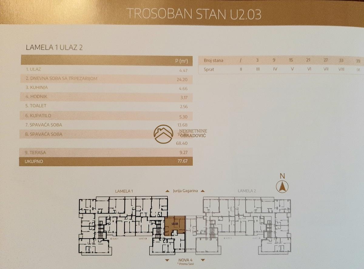 Najsavremenija garaza na tri podzemne etaze, veoma prostrana, ispunjava standard za sve velicine vozila. Cena garaznog mesta od 25.000-27.000 eur.