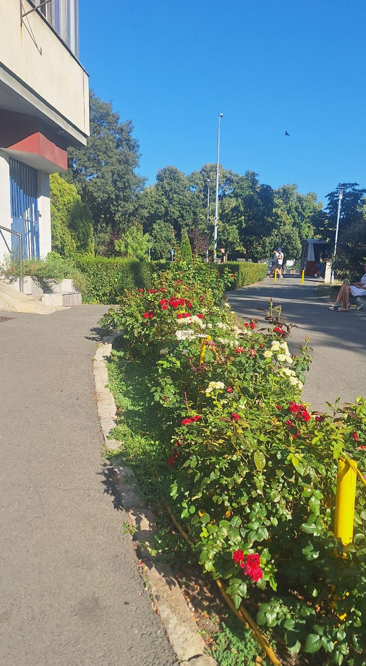 Ispred zgrade se nalaze pesacke staze, uredeno zelenilo i dosta parking mesta.