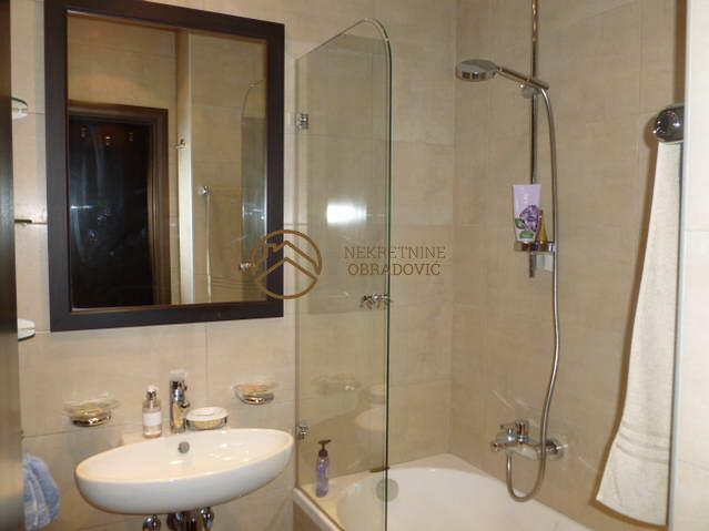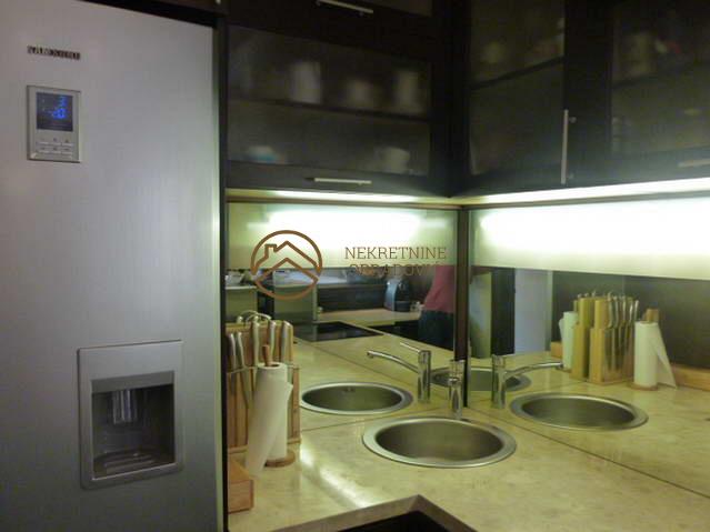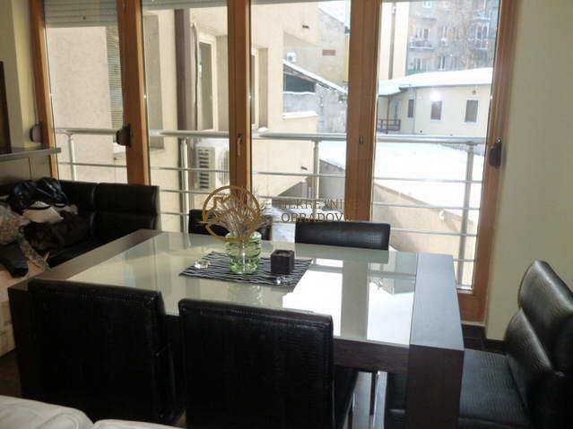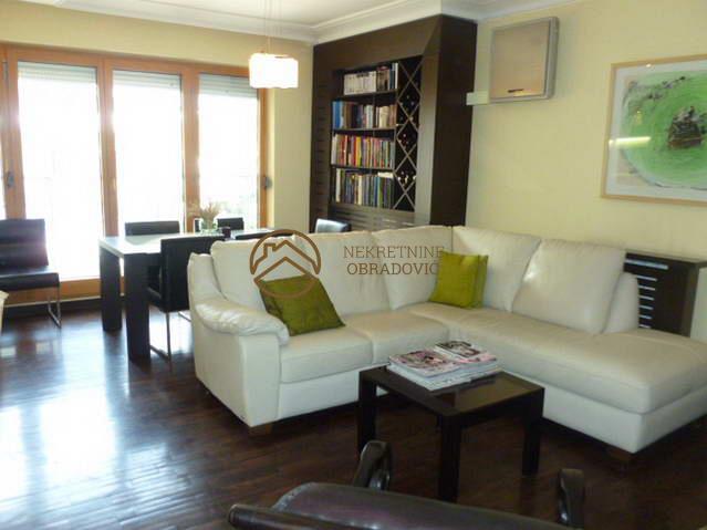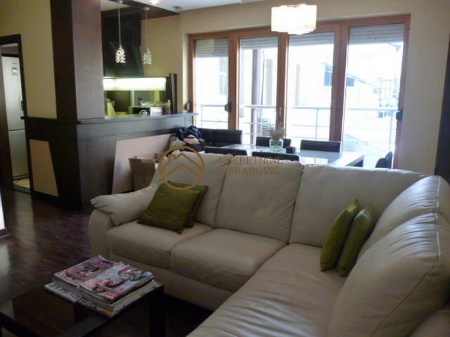 Stan se nalazi u zgradi staroj petnaestak godina, kvalitetno gradjenoj i uvucenoj od buke. Mermerni je ulaz i odrzavan. Stan je dvostrano orijentisan, spavace sobe su na severnoj strani i imaju izlaz na zajednicku terasu. Dnevni boravak sa trpezarijom je juzno orjientisan i ima francuski balkon. U stanu je alu-drvo stolarija, parket A klase, uvozna keramika i sanitarije i delimicno spusteni plafoni sa rasvetom. Poseduje dva kupatila. Po zelji kupca, u stanu moze ostati namestaj. Blizina ulice Draze Pavlovica.