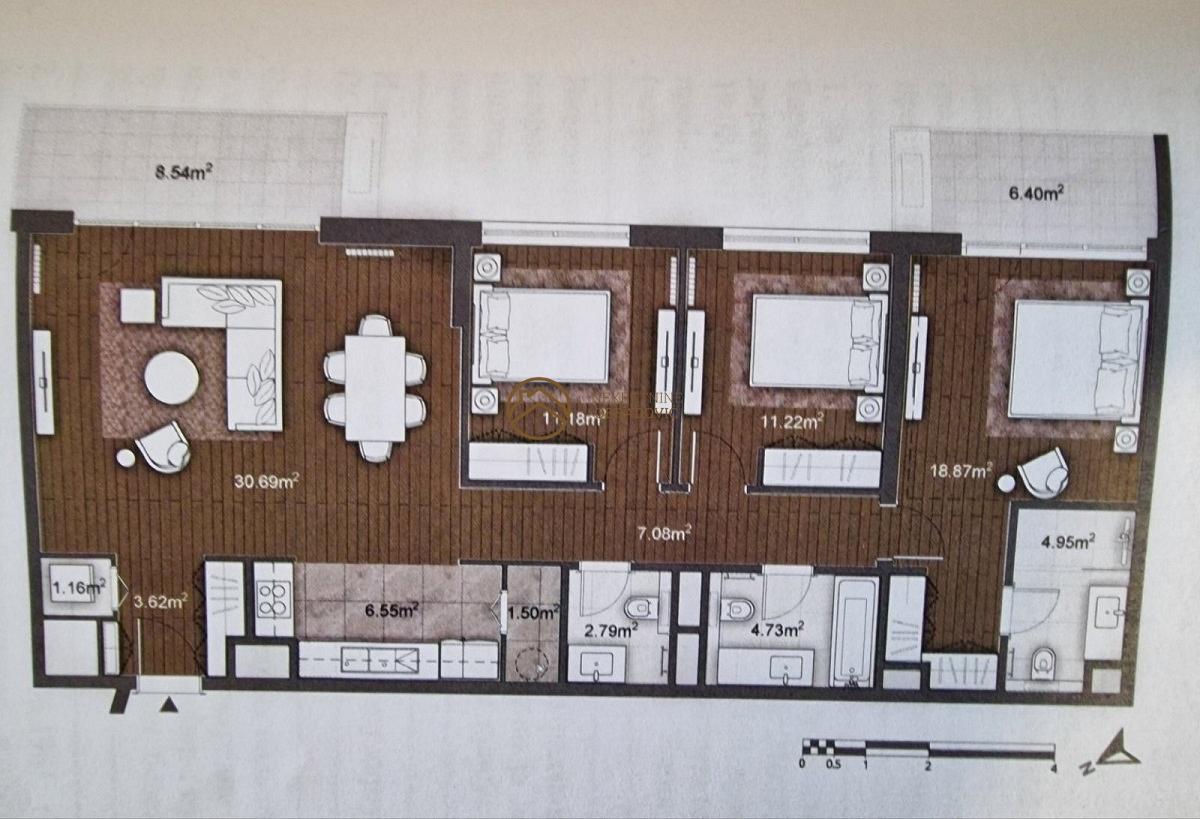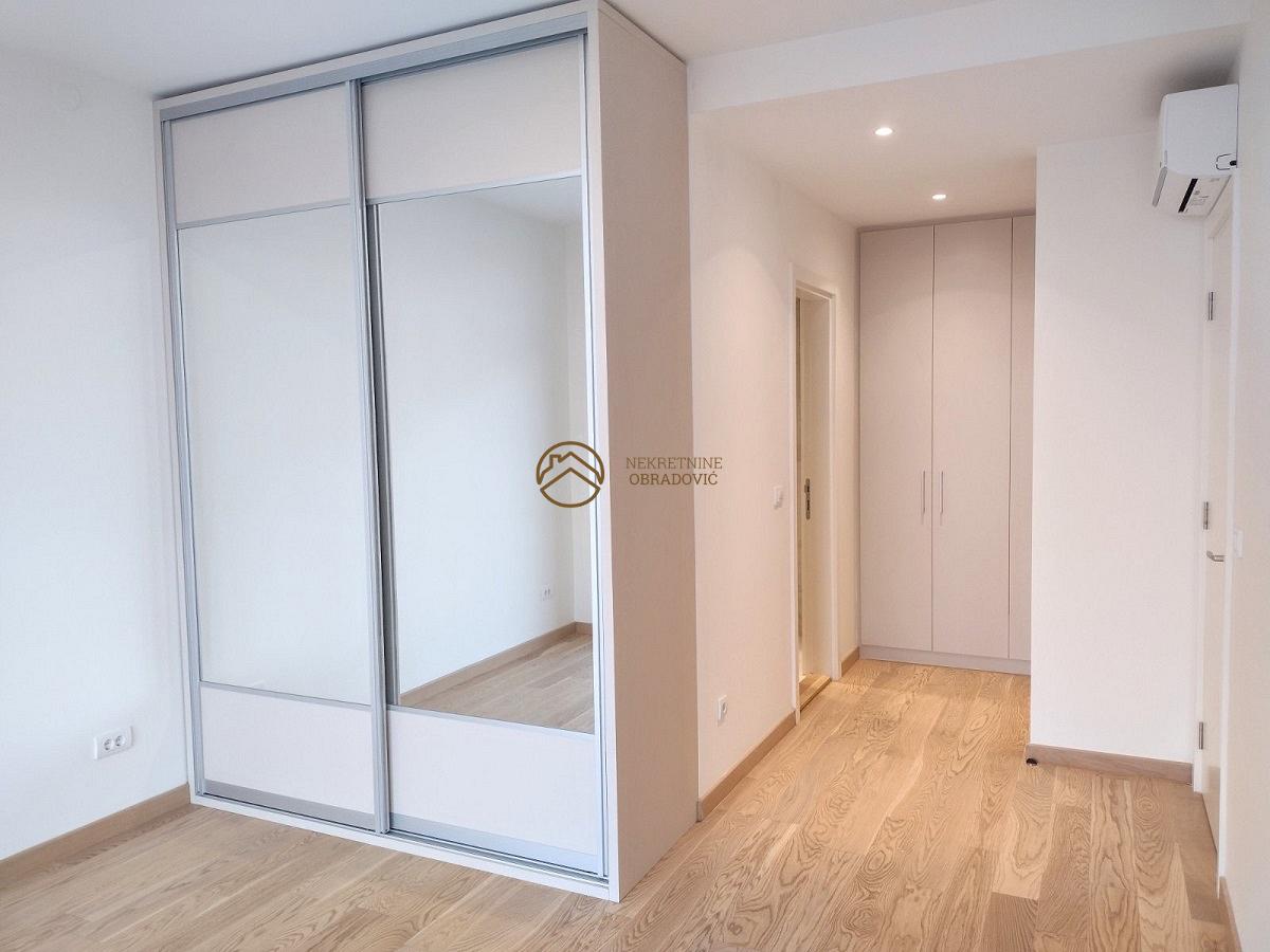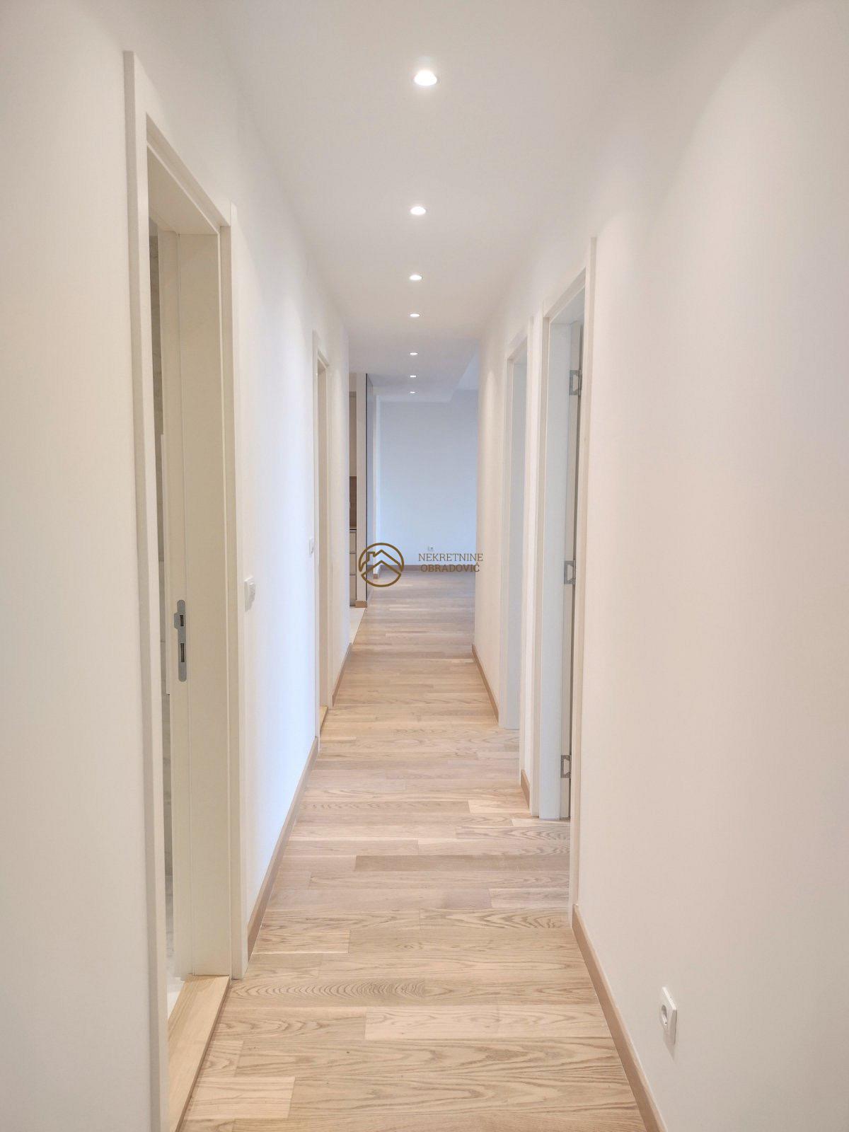 Od prostorija, ova nekretnina poseduje: Ulazni prostor, dnevni boravak sa trpezarijom i kuhinjom, tri spavace sobe(jedna je master), dva kupatila, toalet, garderoberi, hodnik, vesernica, ostava, dve terase.