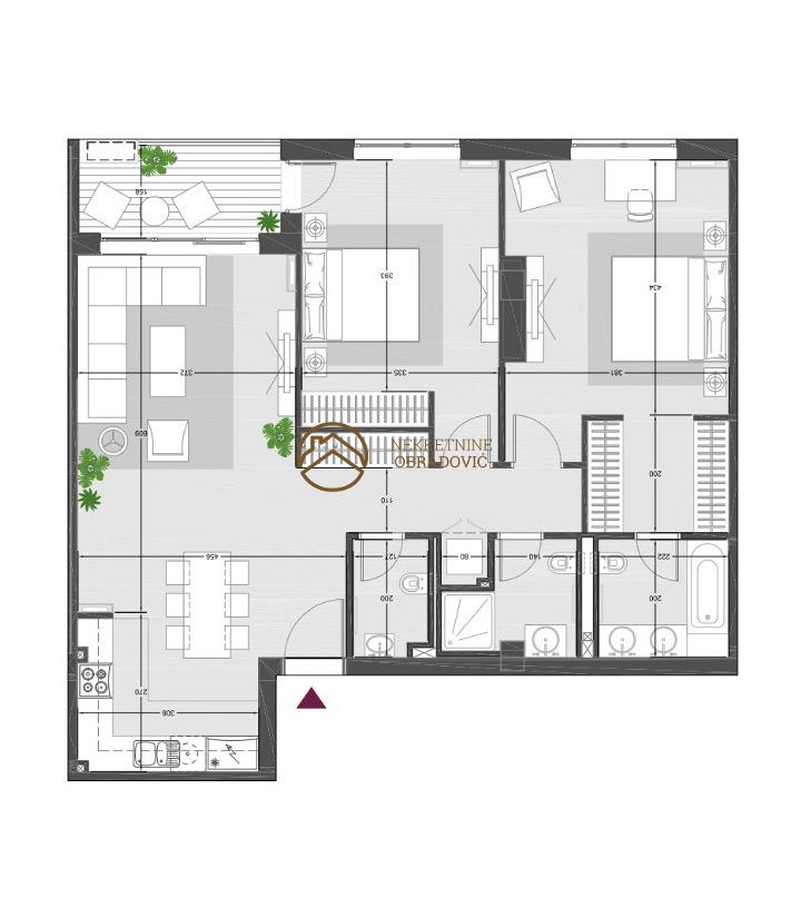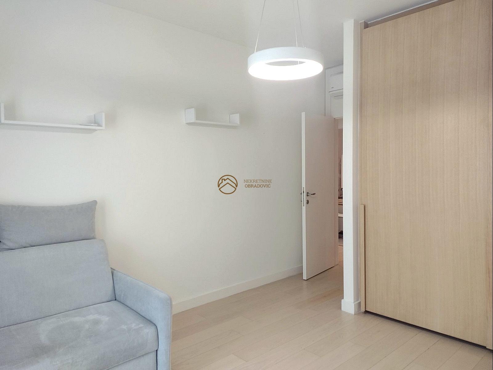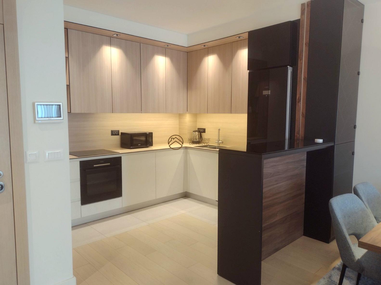 Stan je kompletno opremljen, ukljucujuci kuhinju sa premium belom tehnikom.