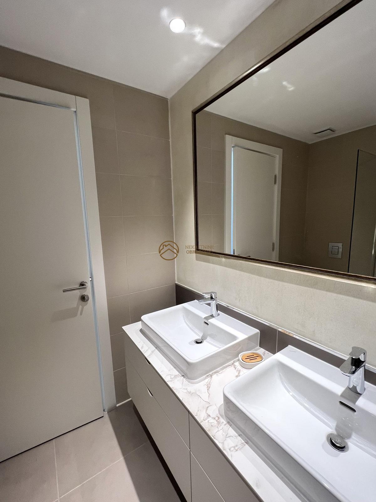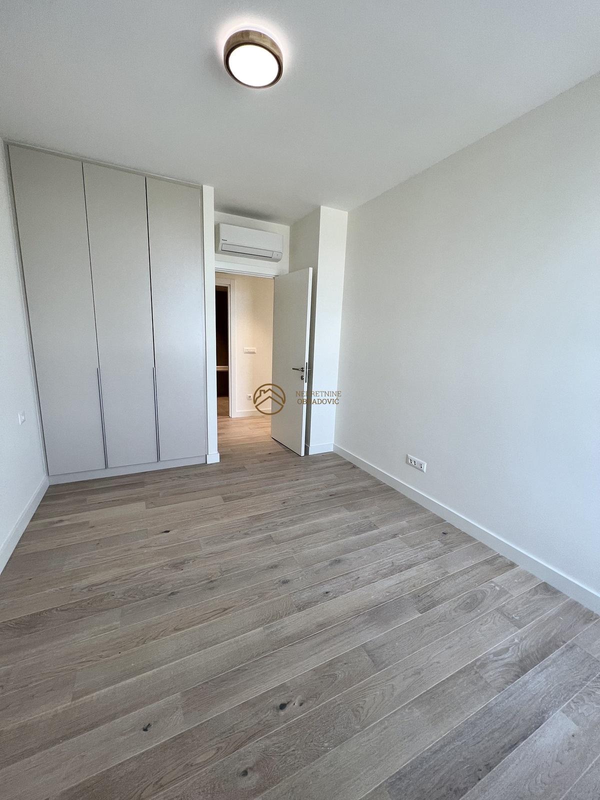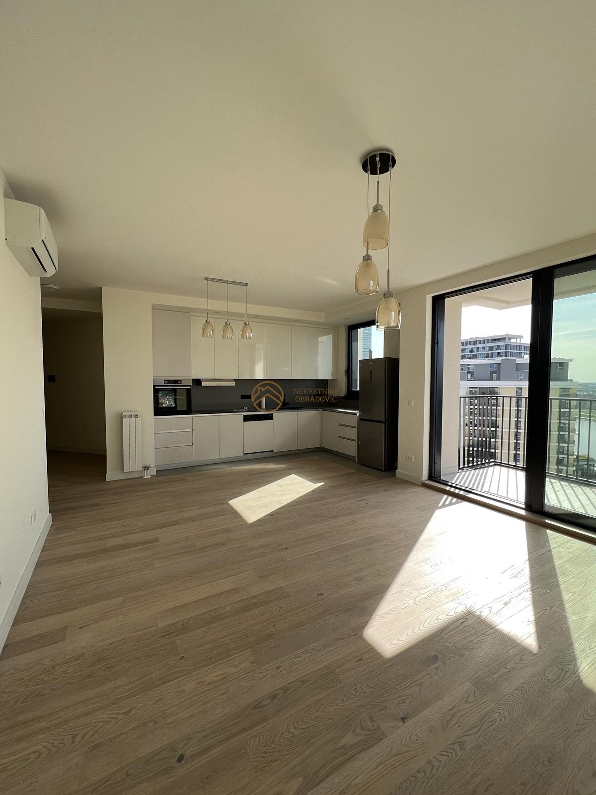 Prodajemo prelep cetvorosoban stan u Beogradu na vodi u zgradi Metropolitan, na 15. spratu. Stan ima 111m2, od kojih je 100m2 grejne povrsine, a 11m2 terase. Veoma je komforan, dvostrano otrijentisan, te time i veoma osvetljen. Od prostorija poseduje dnevni boravak, kuhinju sa trpezarijom, tri spavace sobe, dva kupatila, toalet i dve terase. Kuhinja i kupatila su u potpunosti opremljena svim modernim sanitarijama i aparatima. Postoji mogucnost kupovine parking mesta u garazi na -1 nivou zgrade po ceni od 25000EUR.