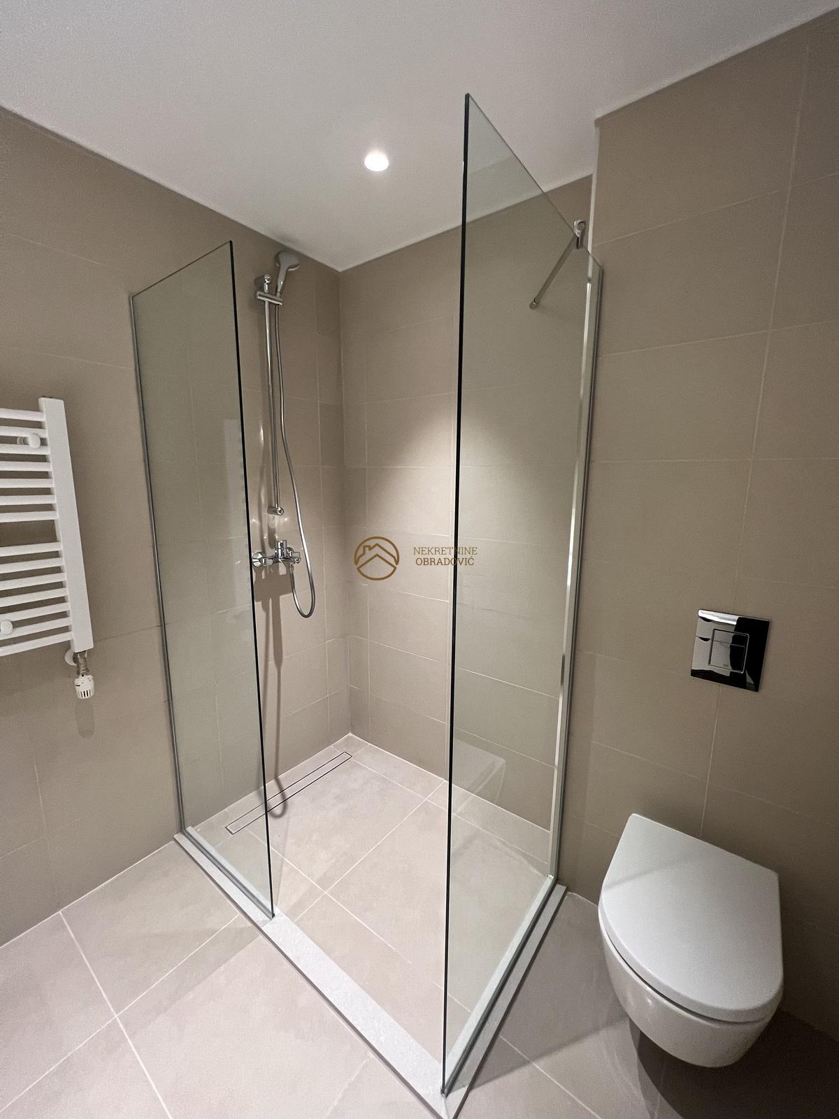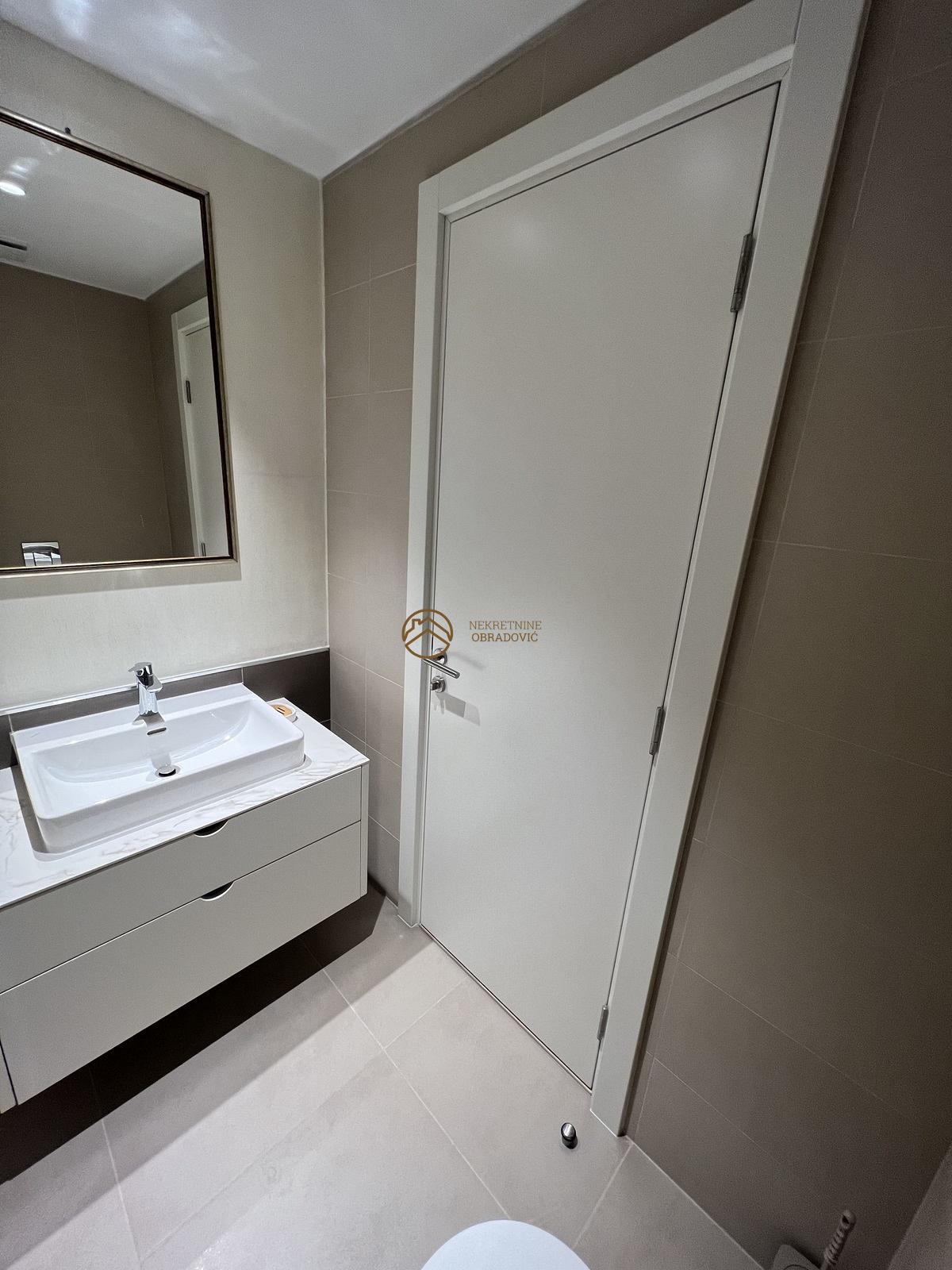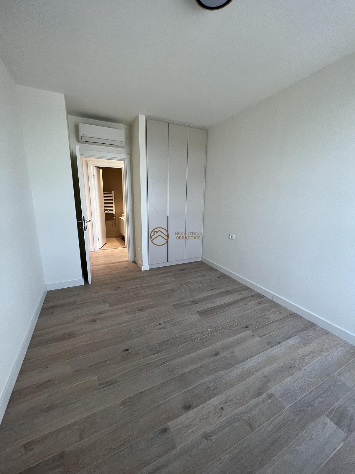 Prodajemo prelep cetvorosoban stan u Beogradu na vodi u zgradi Metropolitan, na 15. spratu. Stan ima 111m2, od kojih je 100m2 grejne povrsine, a 11m2 terase. Veoma je komforan, dvostrano otrijentisan, te time i veoma osvetljen. Od prostorija poseduje dnevni boravak, kuhinju sa trpezarijom, tri spavace sobe, dva kupatila, toalet i dve terase. Kuhinja i kupatila su u potpunosti opremljena svim modernim sanitarijama i aparatima. Postoji mogucnost kupovine parking mesta u garazi na -1 nivou zgrade po ceni od 25000EUR.