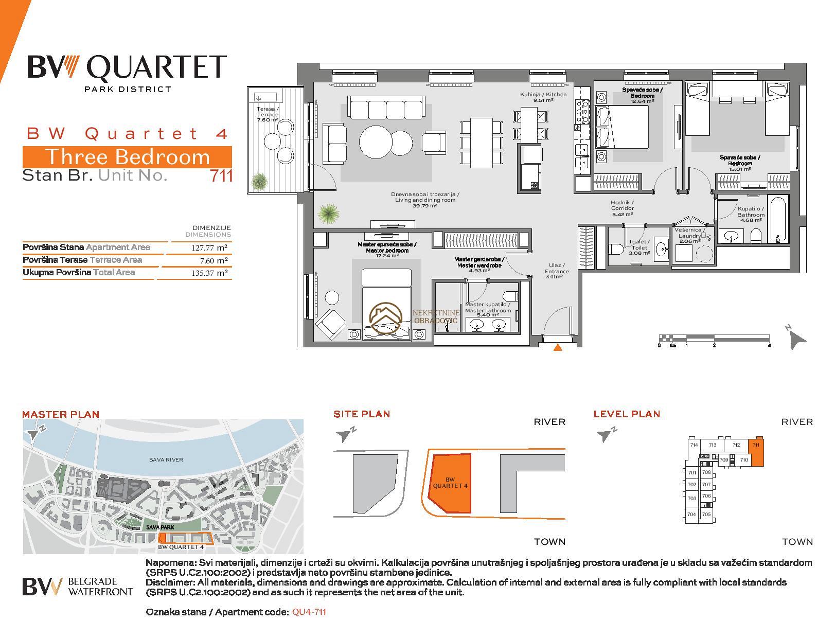 U ponudi je izuzetan, trostrano orijentisan cetvorosoban stan, povrsine 157m2, na sedmoj etazi, pozicioniran prema gradu i reci.