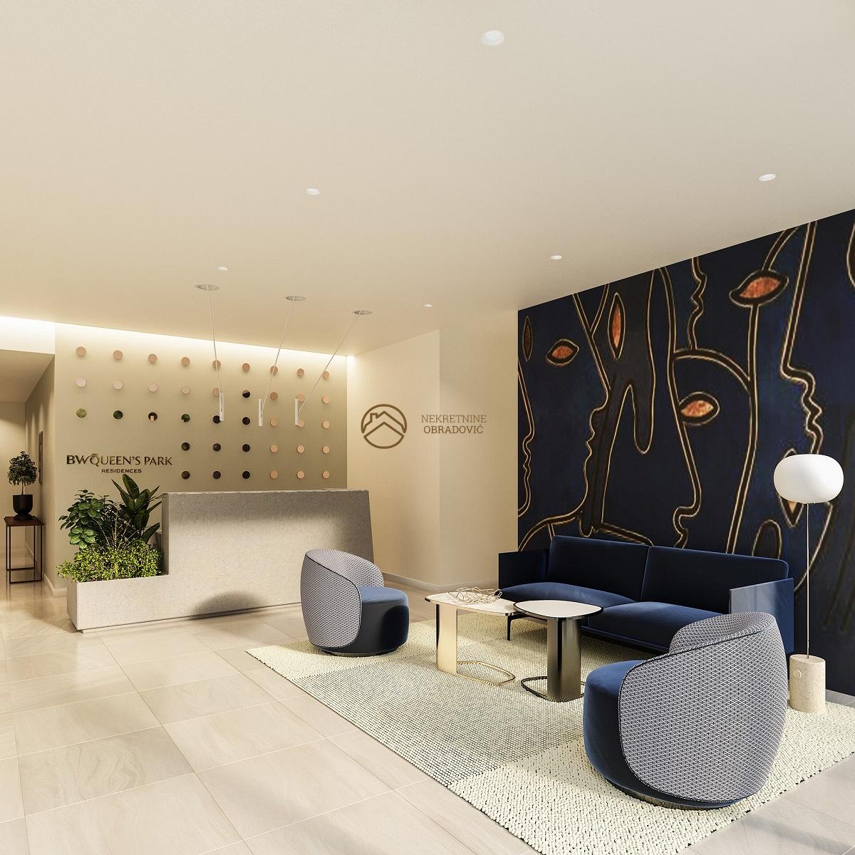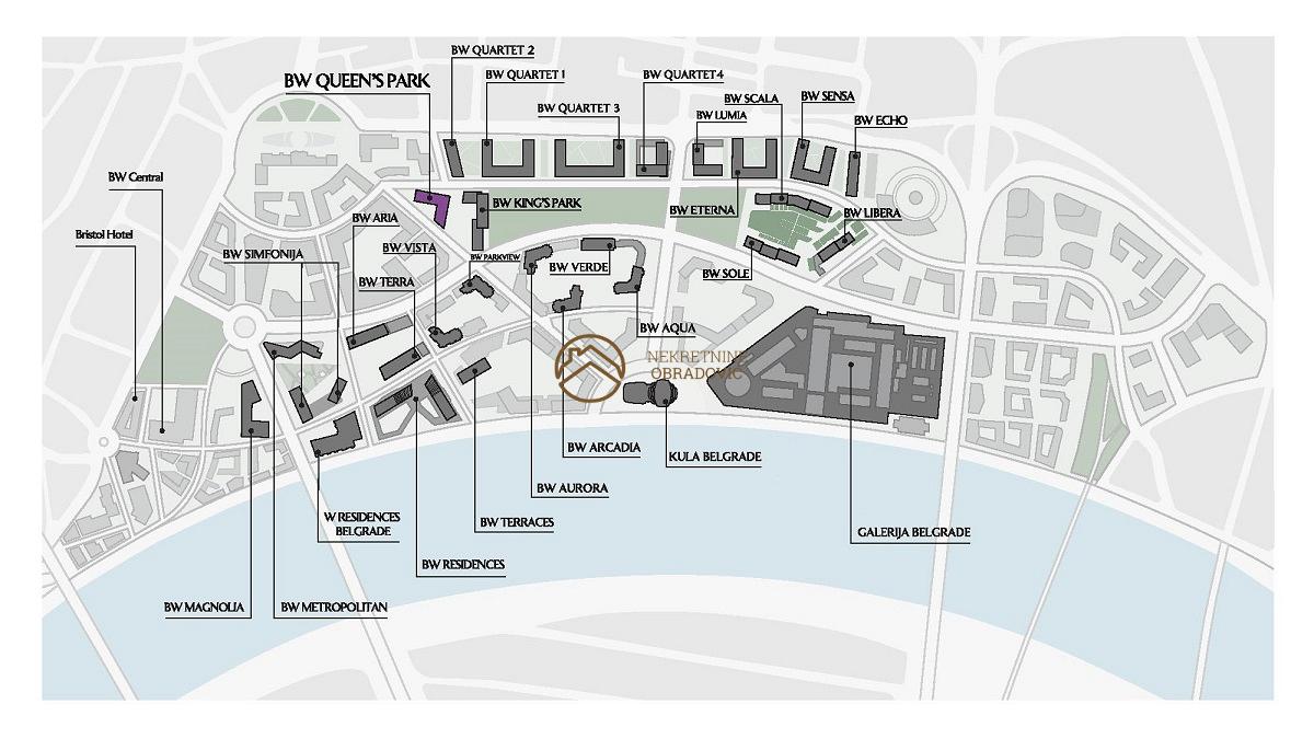 Predstavljamo BW Queen s Park Residences - novu zgradu u okviru projekta Beograd na vodi. Ovaj stambeno-poslovni objekat nalazi se u trecem redu od reke Save, u neposredoj blizini Savskog parka I predstavlja idealan balans izmedju urbane gradske sredine I prirodnog okruzenja. Zgradu karakterisu jedinstvena fasadna resenja u art deco stilu, prefinjen odabir materijala I boja i velike svetlosne povrsine. Ova moderna osmospratnica raspolaze sa 108 stambenih jedinica razlicitih kvadratura - od studija do stanova sa tri spavace sobe projektovanih tako da zadovolje sve kriterijume ekskluziviteta i udobnosti. U ponudi je luksuzan, trostrano orijentisan cetvorosoban stan na na poslednjoj etazi, povrsine 171m2, pozicioniran prema gradu i reci.