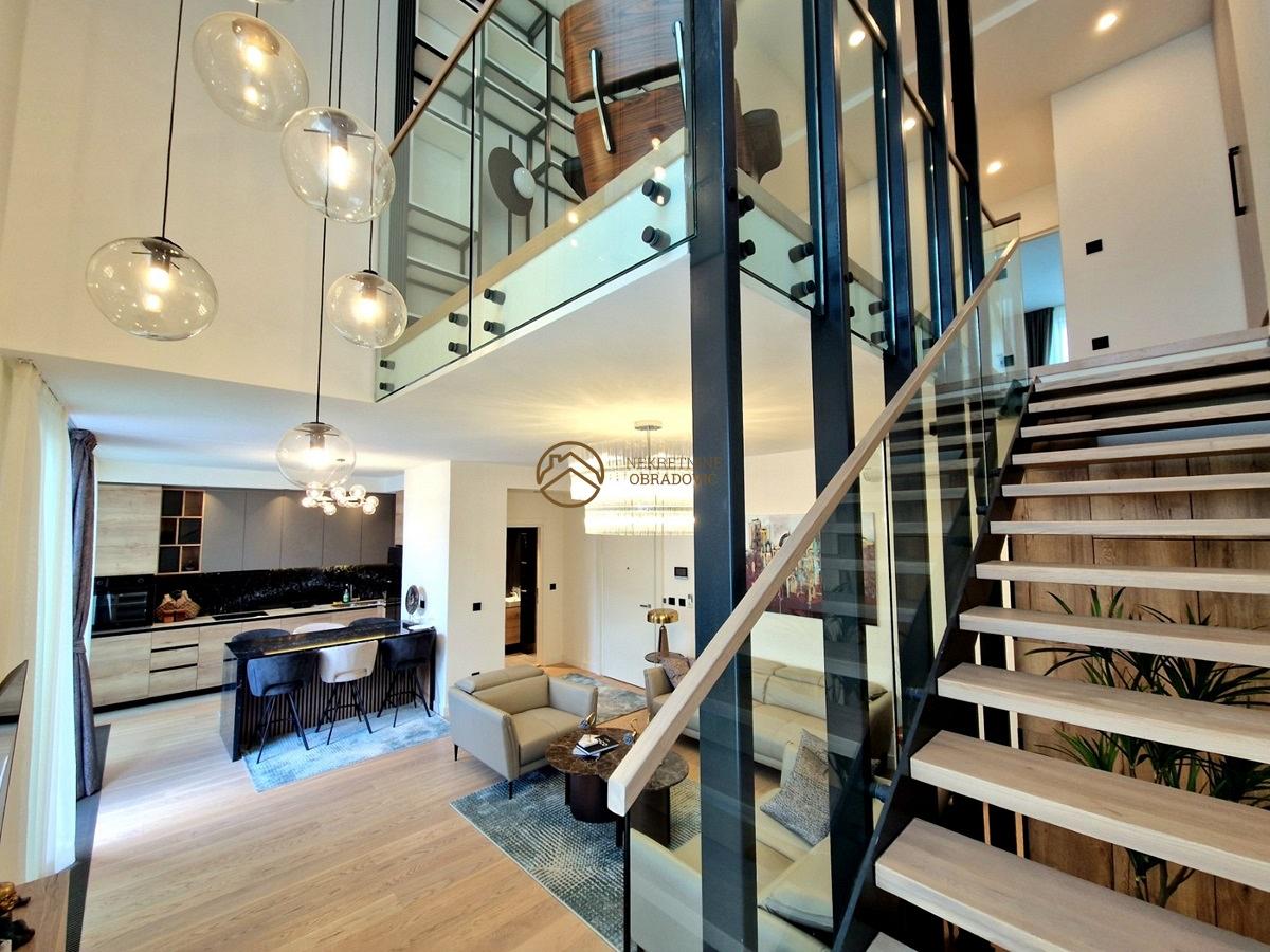 Impozantan penthaus duplex, nalazi se se u zgradi BW Simfonija 1, u neposrednoj blizini reke i Promenade.