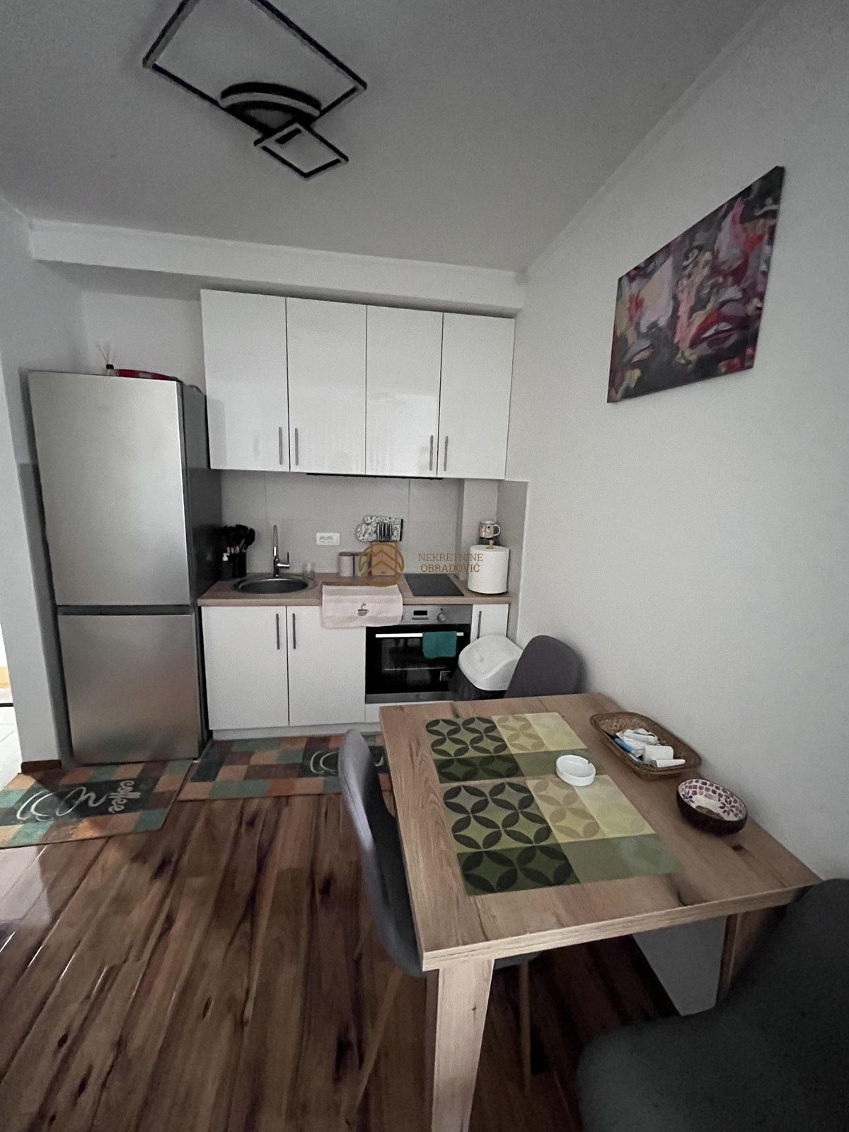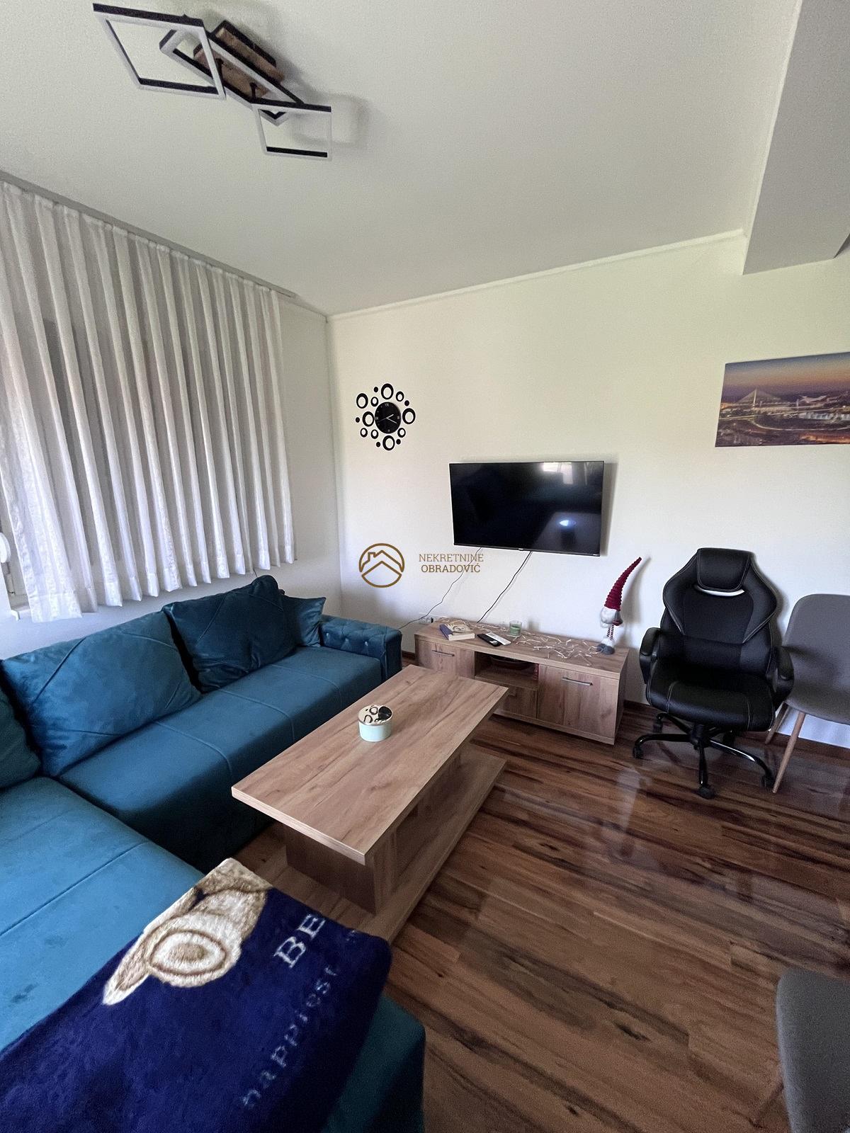 Stan je opremljen kvalitetnim namestajem i svim potrebnim uredjajima, spreman za useljenje bez dodatnih ulaganja. Uz inverter klimu, stan poseduje i norveske radijatore za optimalno grejanje, ukljucujuci i grejanje u kupatilu.